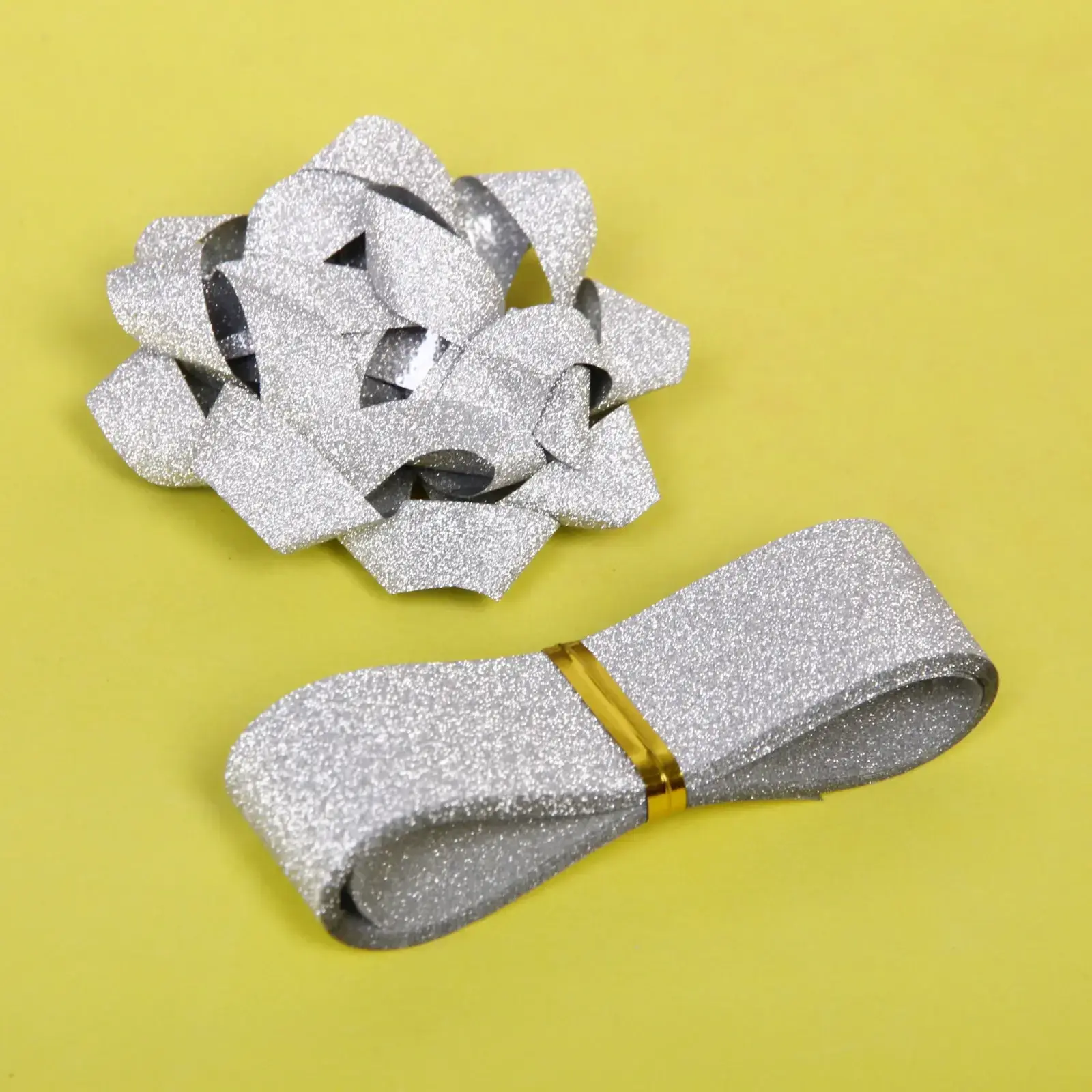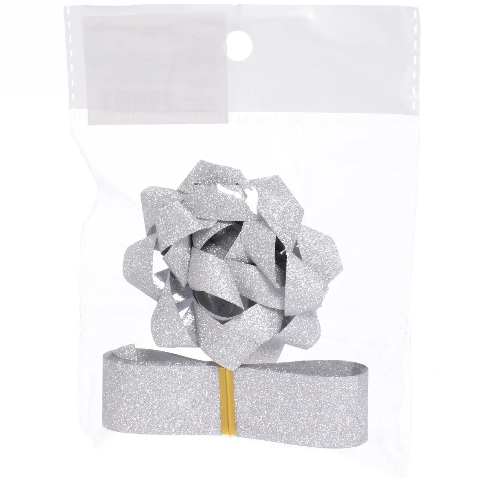 Материал — ПВХ, что обеспечивает долговечность и надежность элементов. Серебристый цвет легко комбинируется с другими оттенками, что позволяет вам создавать уникальные комбинации для упаковки. Размеры банта и ленты идеально подходят для большинства подарков, а длина ленты в 3 метра позволяет вам использовать ее для нескольких упаковок.