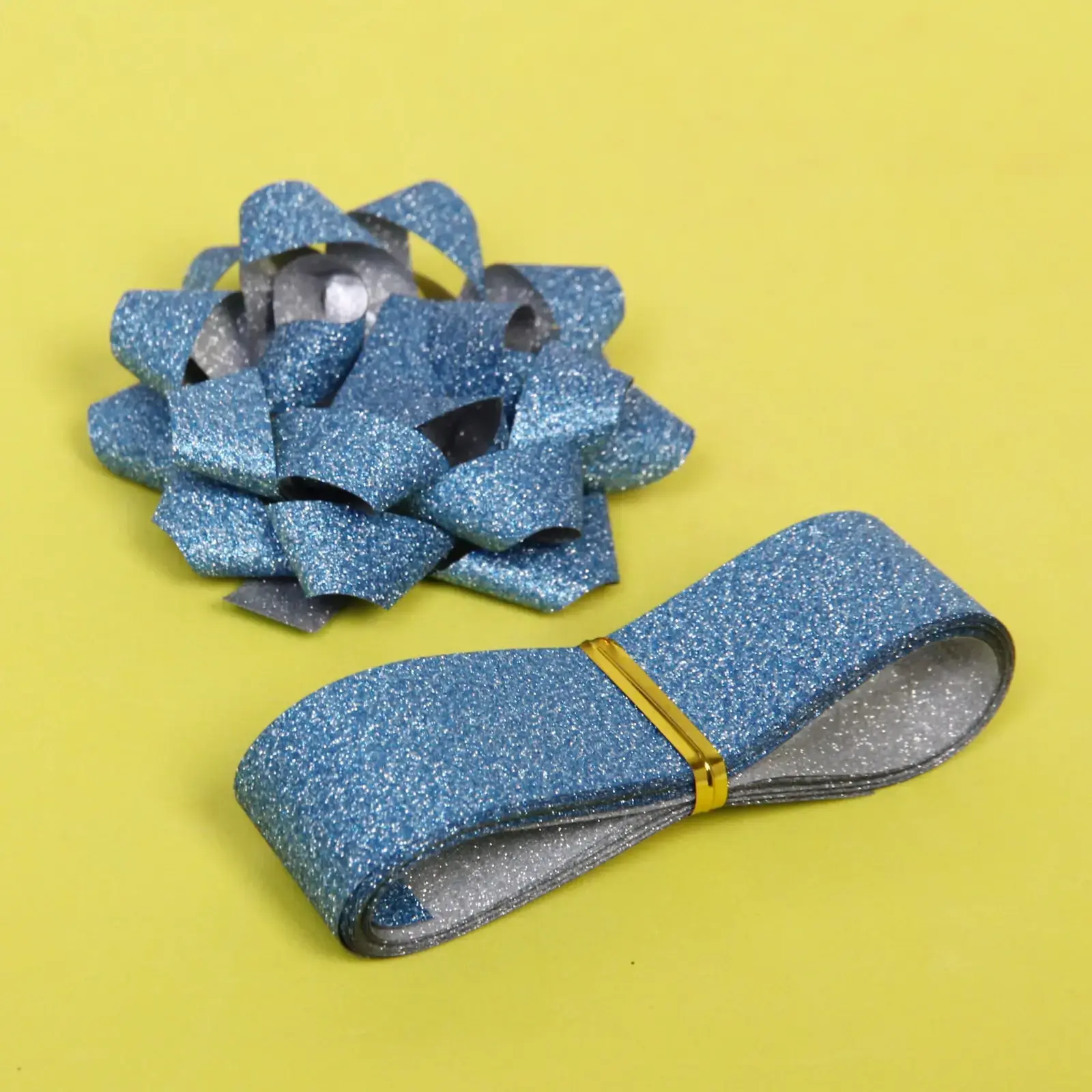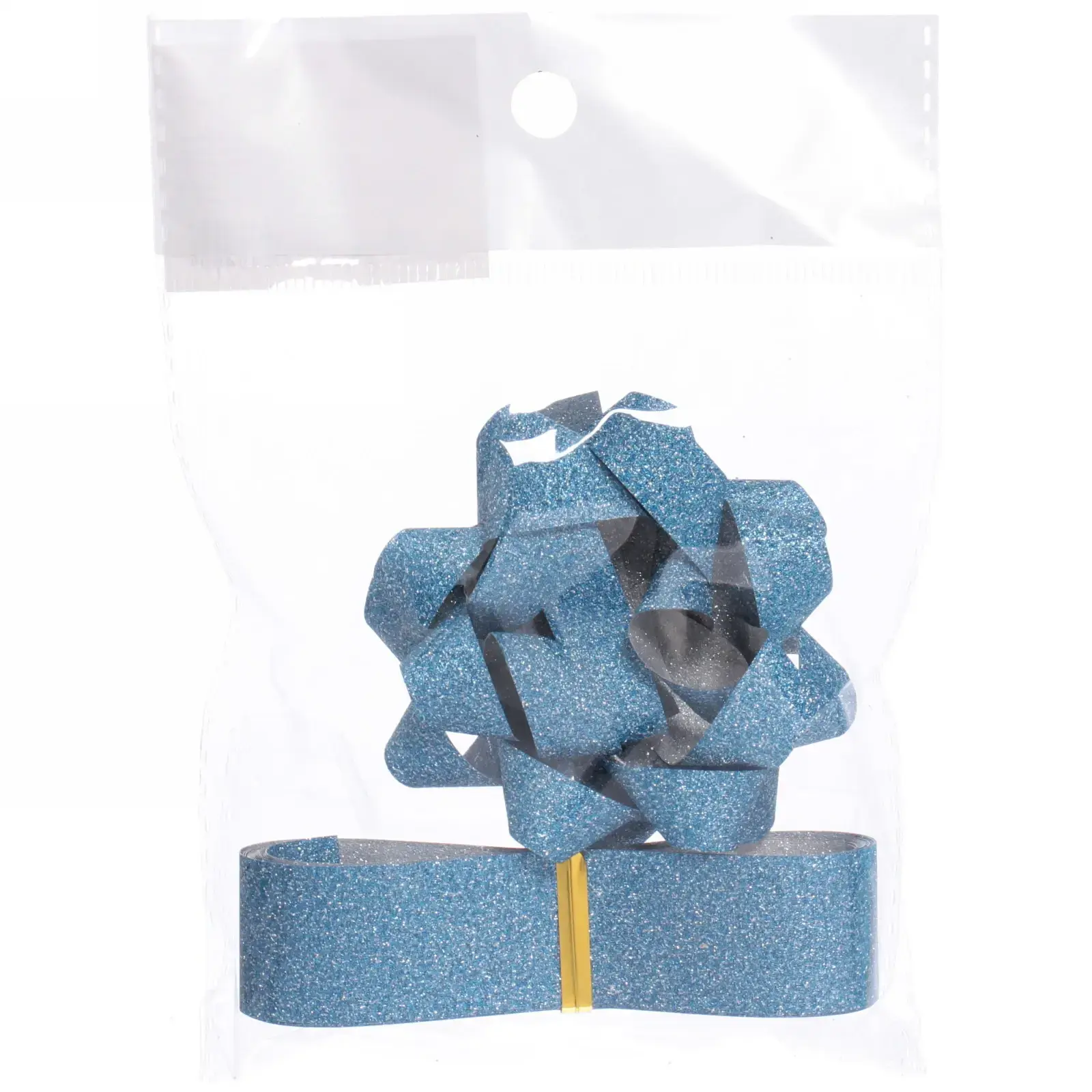 Выбор этого набора гарантирует вам высокое качество и стильный внешний вид. Бант и лента выполнены из блестящего материала, который добавляет изысканности и элегантности. Синий цвет с блестками делает набор универсальным для любого праздника, а также позволяет сочетать его с различными цветами упаковки.