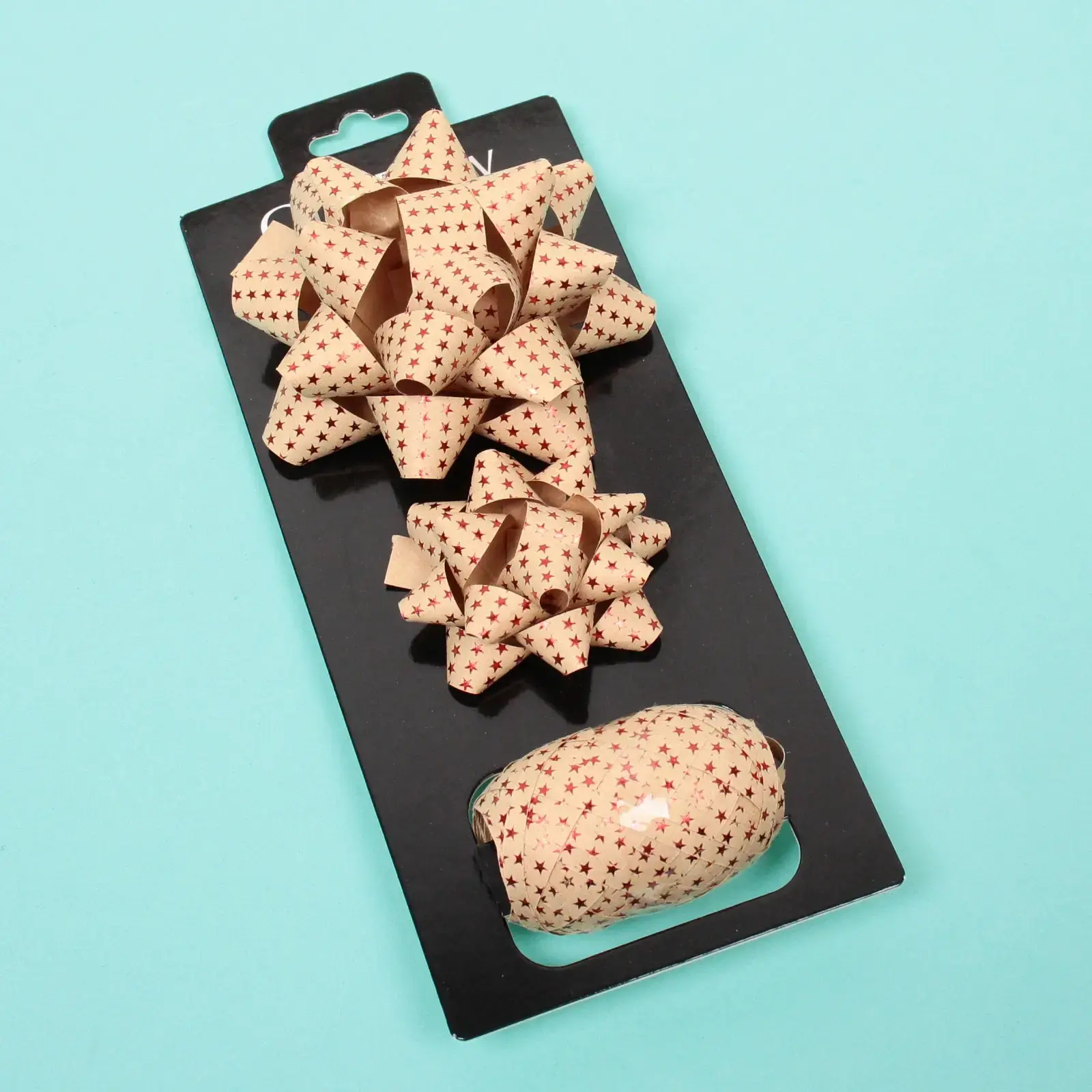 Все элементы набора выполнены из качественного ПВХ, что обеспечивает долговечность и привлекательный внешний вид. Банты имеют светлый фон с красными звездами, что делает их универсальными для любого праздника. Размеры бантов и ленты идеально подходят для оформления как больших, так и маленьких подарков.