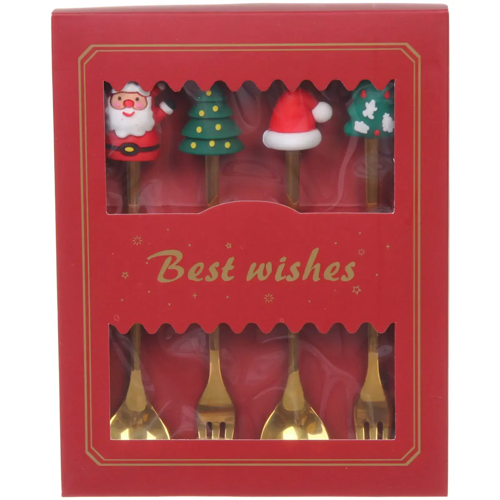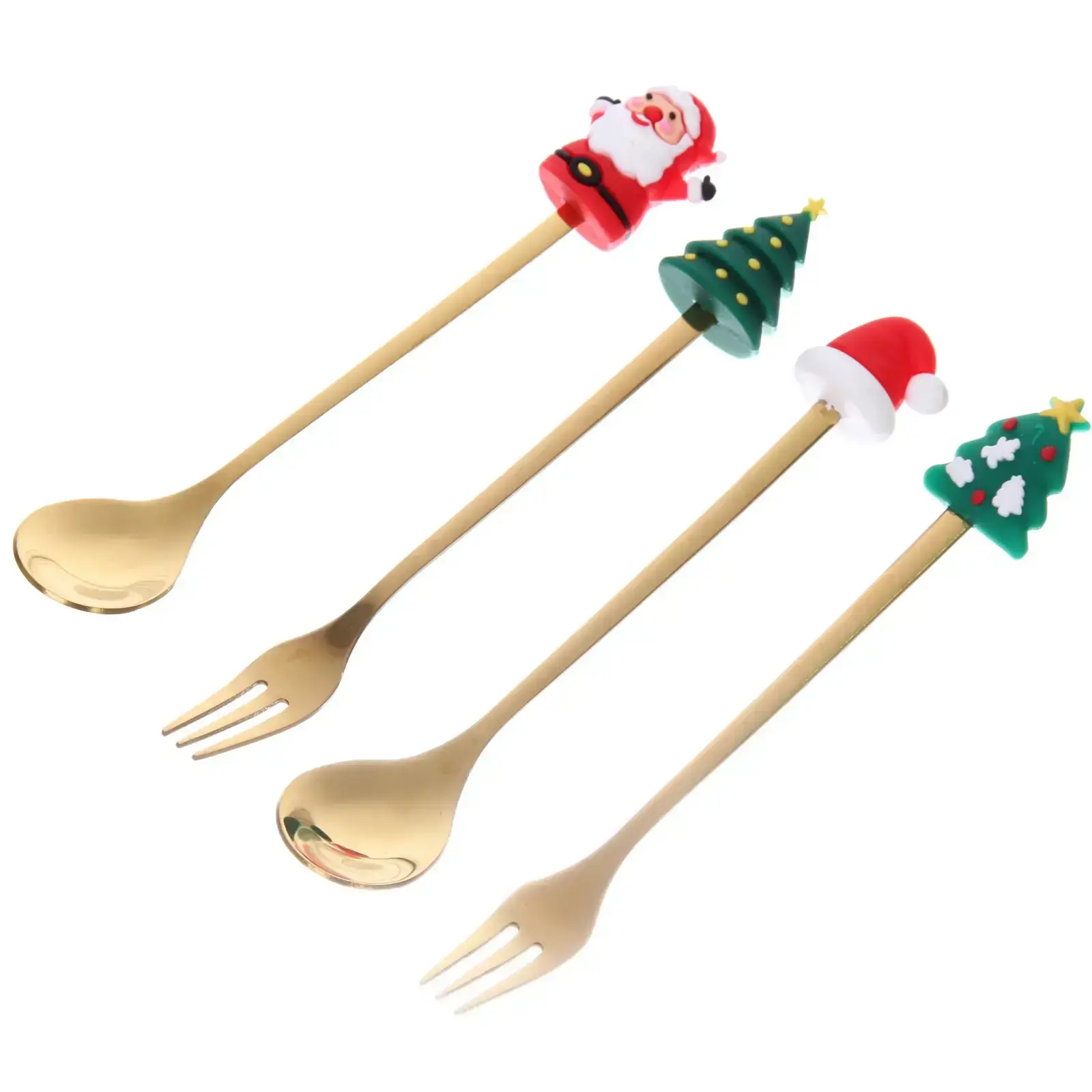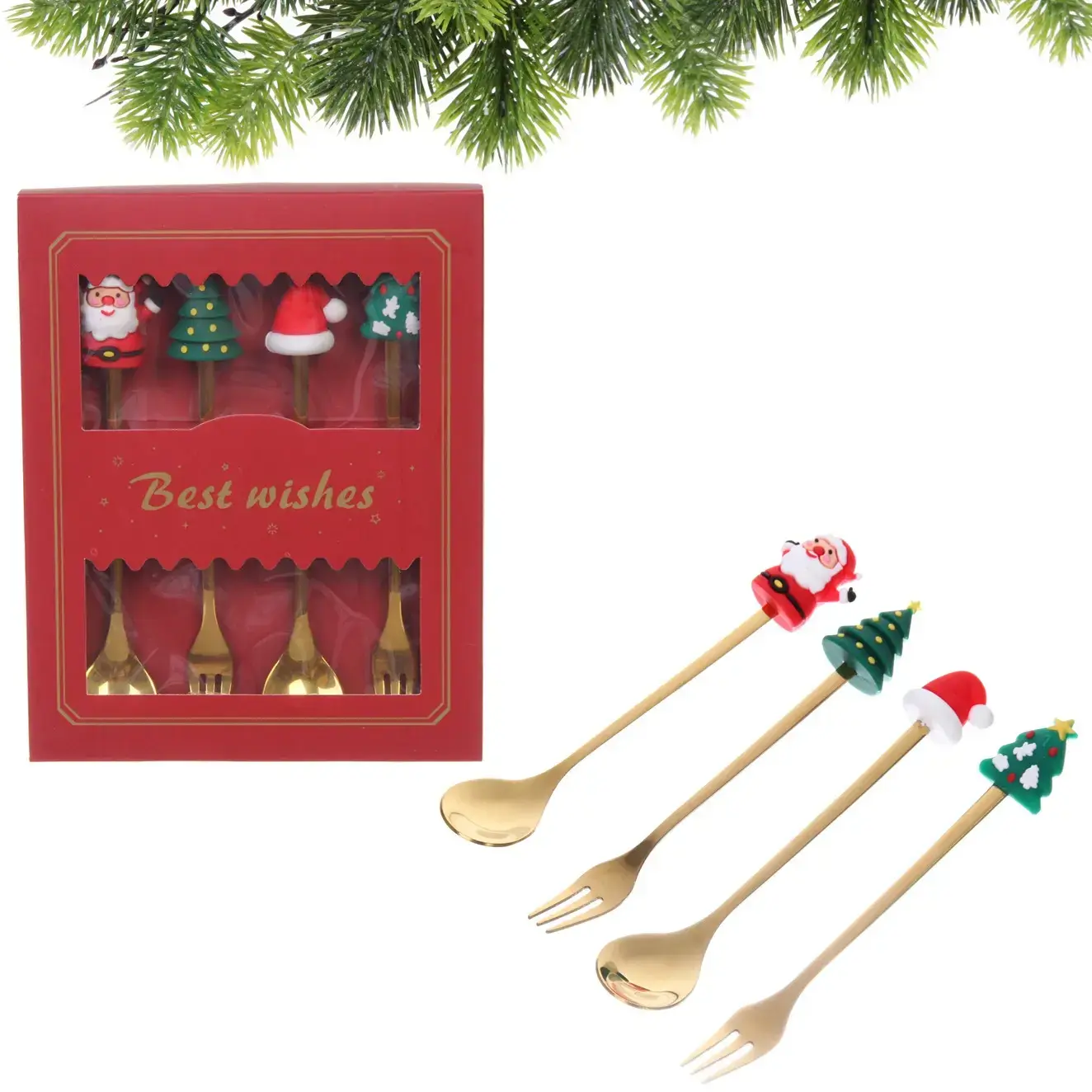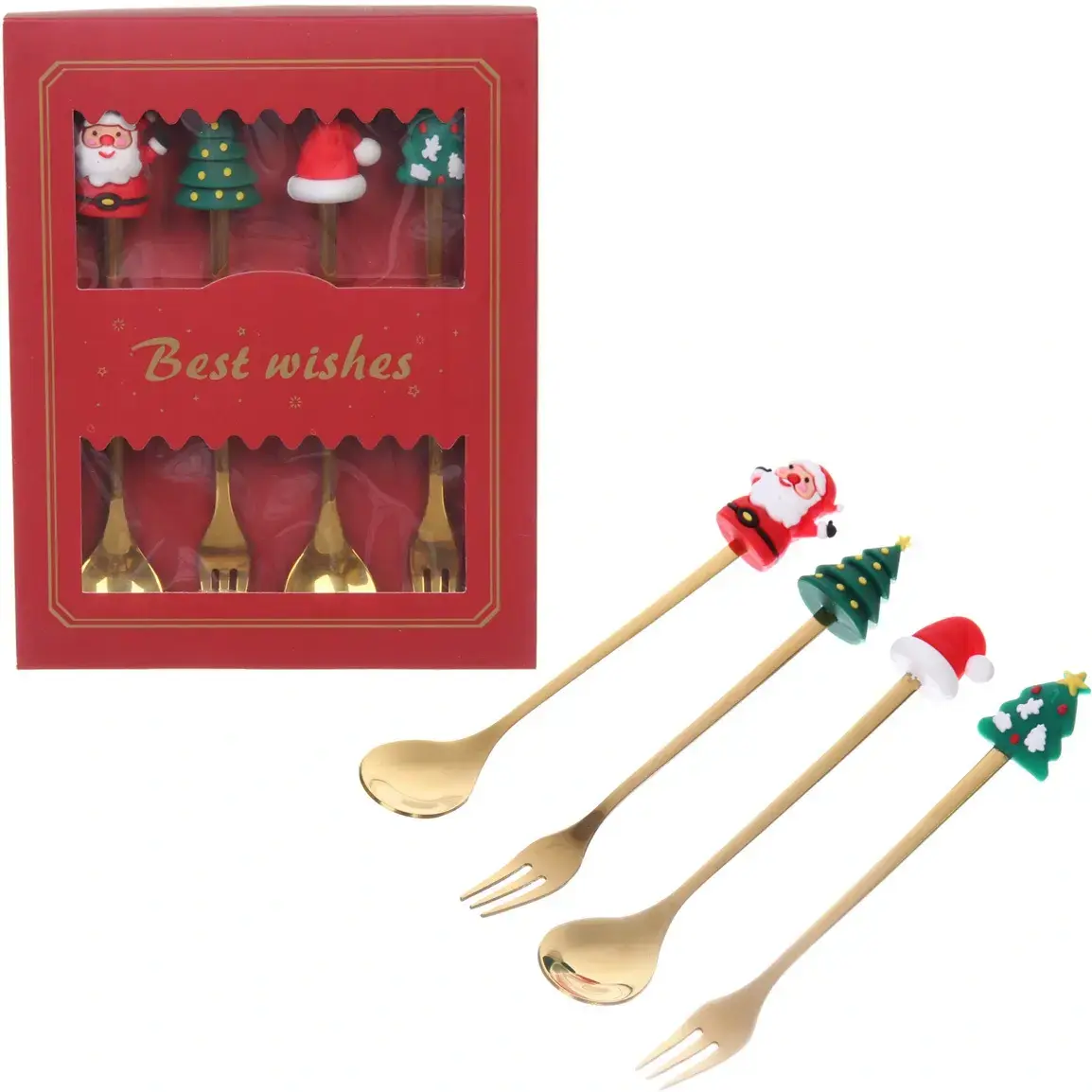 Создайте незабываемую атмосферу на новогоднем столе с набором для десерта «Дед Мороз и Ёлка». Этот набор из четырех предметов включает две вилки и две ложки, выполненные в золотом цвете с яркими декоративными элементами в виде Санта-Клауса и рождественских ёлок. Праздничный дизайн и высокое качество материалов делают этот набор идеальным выбором для сервировки десертов и закусок на новогодние праздники.