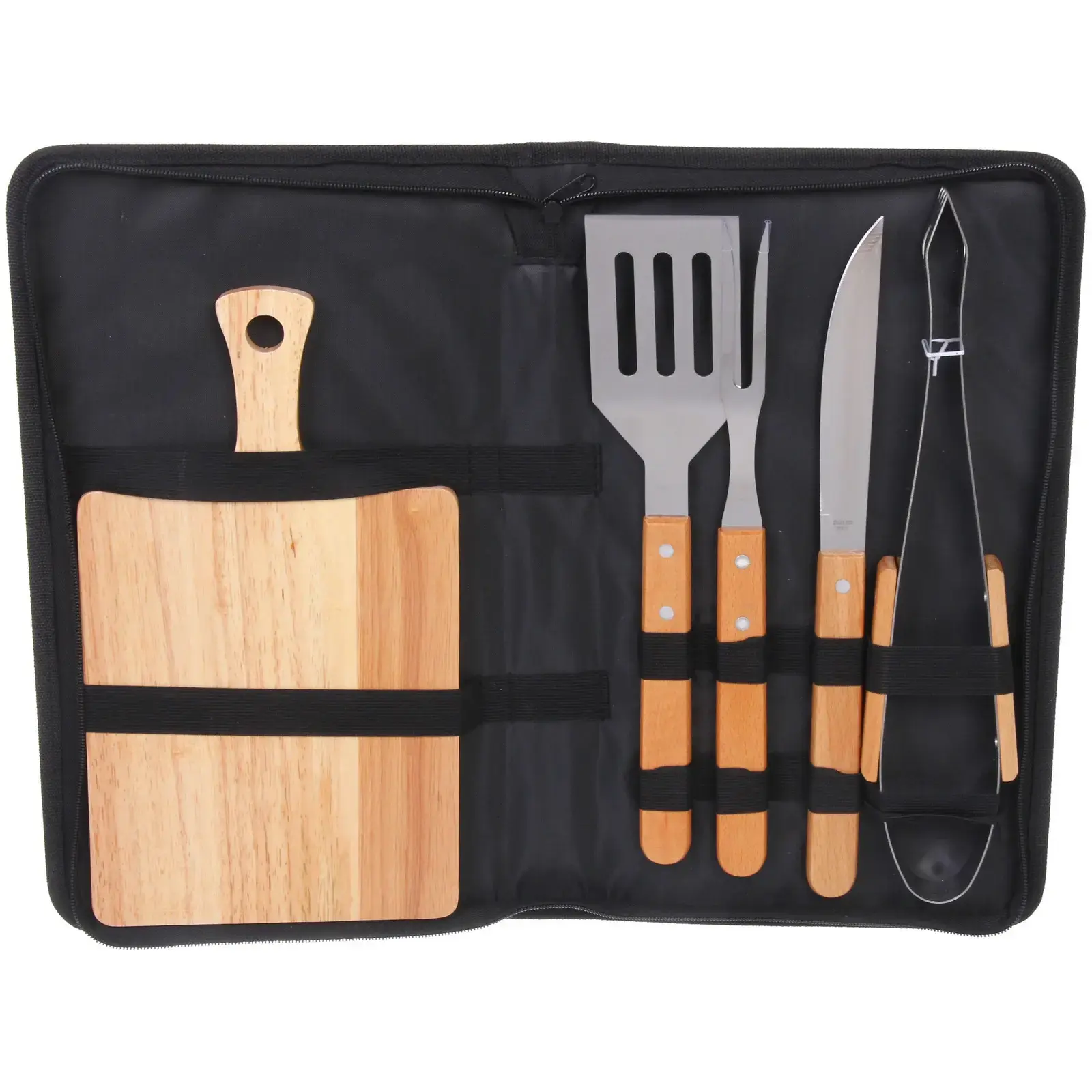 Все инструменты выполнены из нержавеющей стали высокого качества, что обеспечивает их долговечность и надежность. Деревянные ручки придают набору стильный вид и удобство в использовании. Комплект поставляется в стильном и удобном футляре, который обеспечивает безопасное хранение и транспортировку всех инструментов. Благодаря компактному дизайну, вы сможете легко взять набор с собой на пикник, дачу или в путешествие.