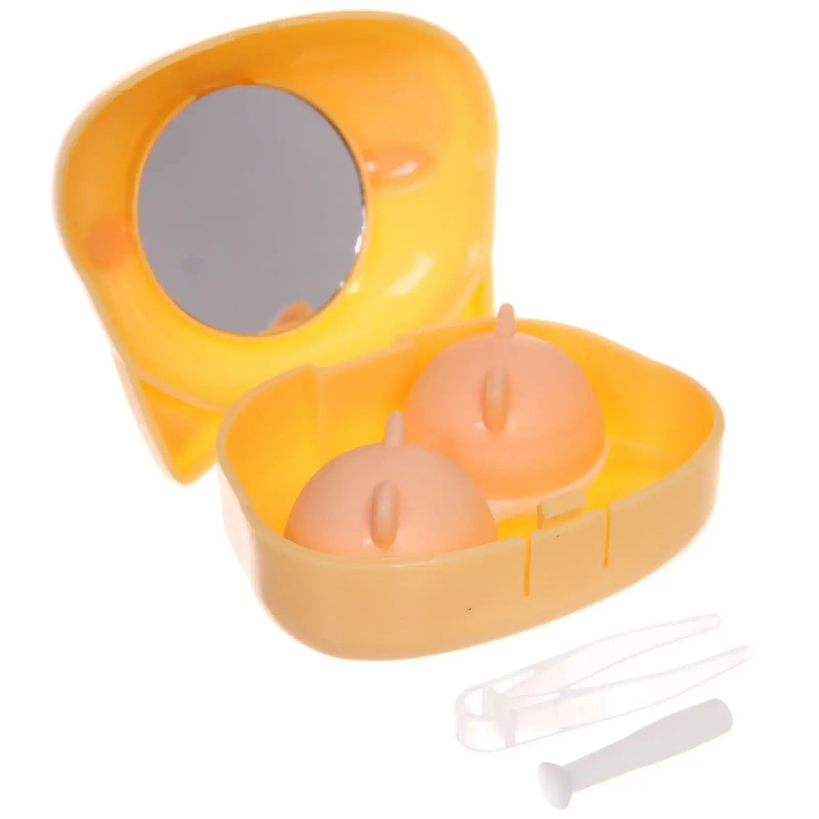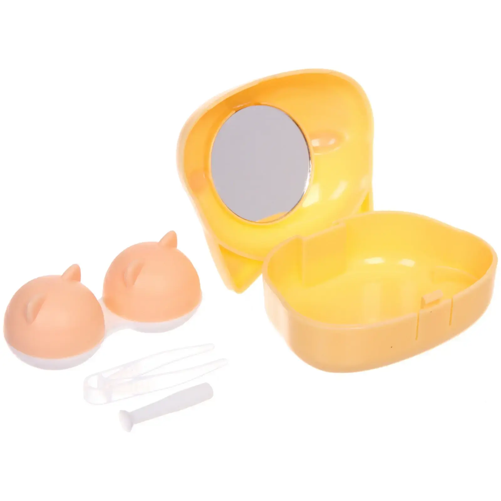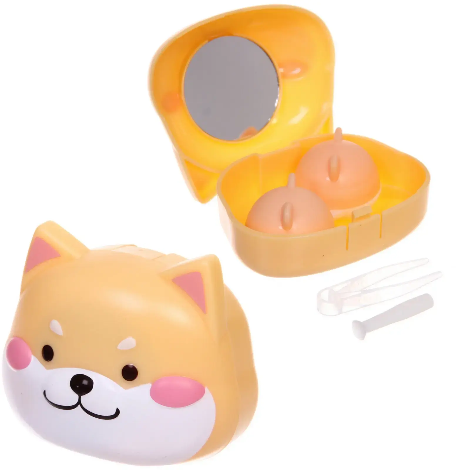 Контейнер выполнен в ярком желтом цвете с милыми чертами собаки, что делает его привлекательным для пользователей всех возрастов. Внутри контейнера находятся два пудровых линзовых контейнера, а также пинцет и специальный инструмент для извлечения линз. Все элементы набора легко очищаются и могут использоваться многократно.