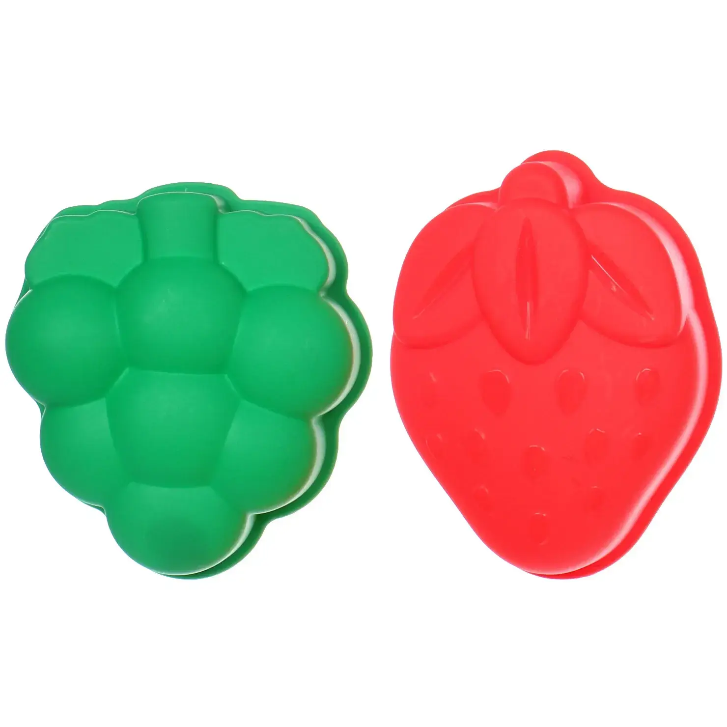 Каждый предмет набора имеет размер 20*11 см. Изделия изготовлены из качественного пластика, безопасного для детей. В комплект входят 4 предмета различных форм: клубника, виноград и другие фрукты.