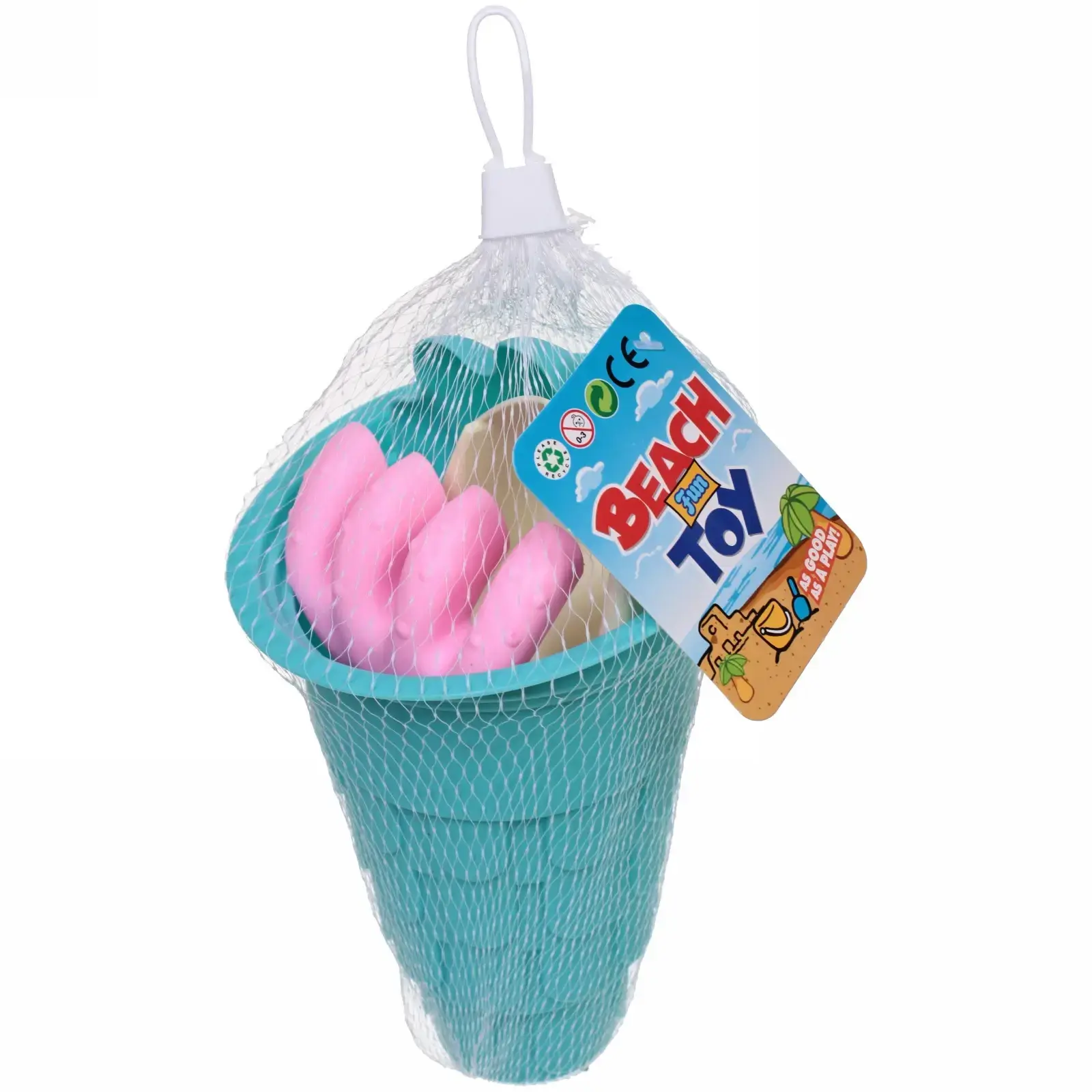 Яркие контрастные цвета (розовый, желтый, голубой, зеленый) стимулируют визуальное восприятие. Закругленные края и мягкий пластик исключают травмы во время игры. Компактные размеры (20х14х14 см) позволяют брать набор на пляж или прогулку.