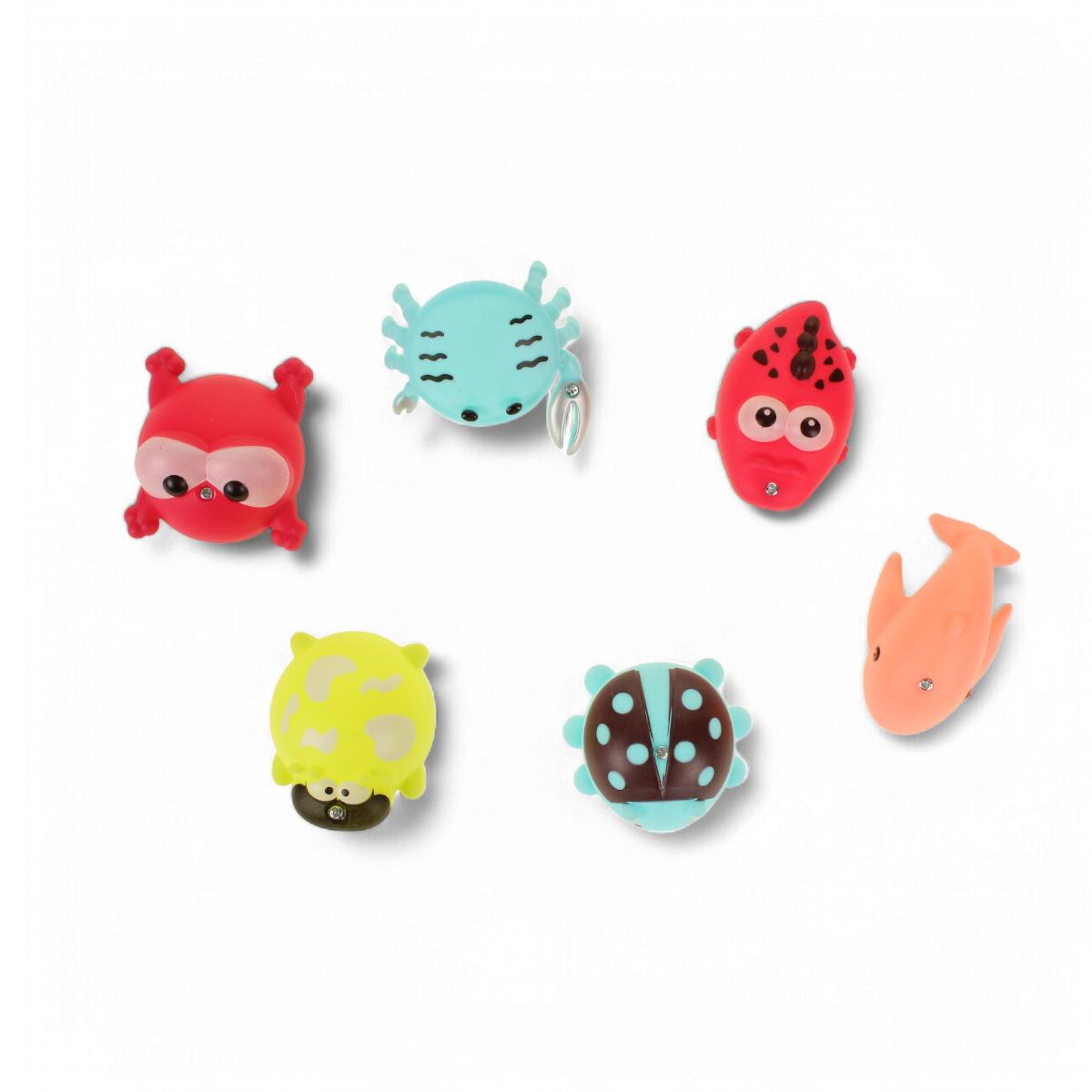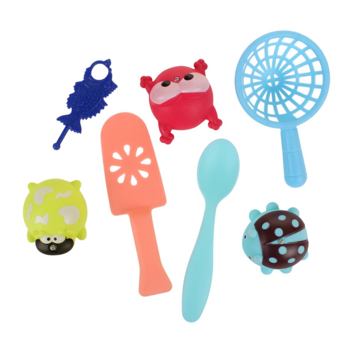 Размер ведерка составляет 9,5 * 11,5 * 11,5 см, что делает его удобным для маленьких ручек. Лопатка и сито также имеют оптимальные размеры для детей: лопатка — 14,7 * 4,6 см, сито — 12 * 7 * 4 см. Фигурки морских животных, такие как краб, рыбы и черепаха, имеют размеры от 5 до 9 см, что позволяет легко их использовать в игре. Все элементы набора легко помещаются в ведерко, что удобно для хранения и транспортировки.