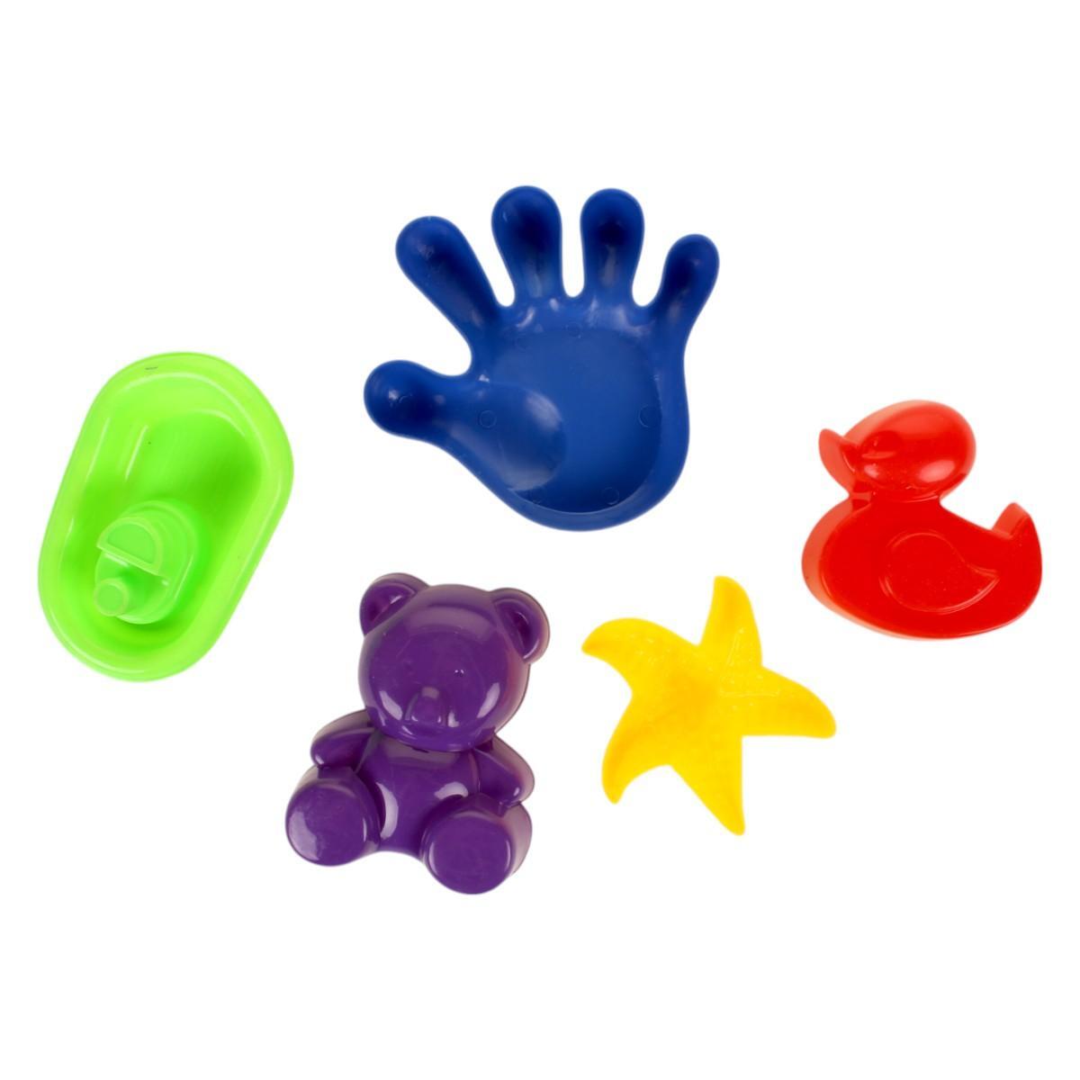 - Разнообразие форм: в набор входят формочки в виде рыбы, утки, медведя и других животных.
