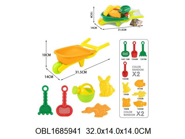 Набор для игры в песок 6 предм. тачка, 2 формчки, 2 совка, разноцвет. сетка OBL1517934