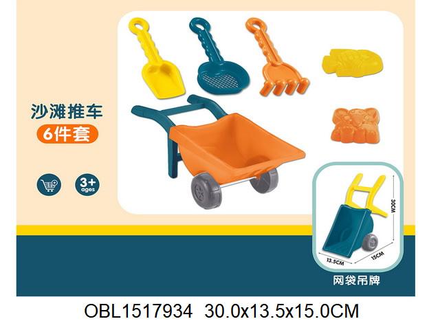 Набор для игры в песок 6 предм. тачка, грабли, совок, сито, 2 форм, сетка, OBL1517934