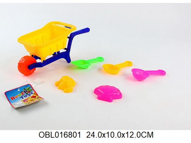 Набор для игры в песок 6 предм. тачка, сито, грабли, совок, 2 форм, сетка