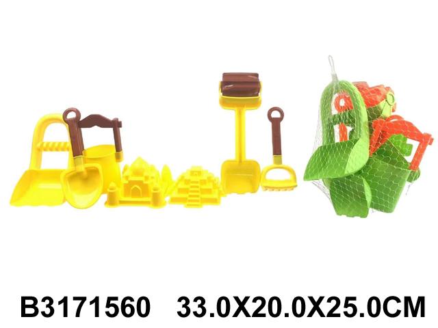 Набор для игры в песок 7 предметов: ведро, лейка, совки, грабли, формочки, сетка 208-6