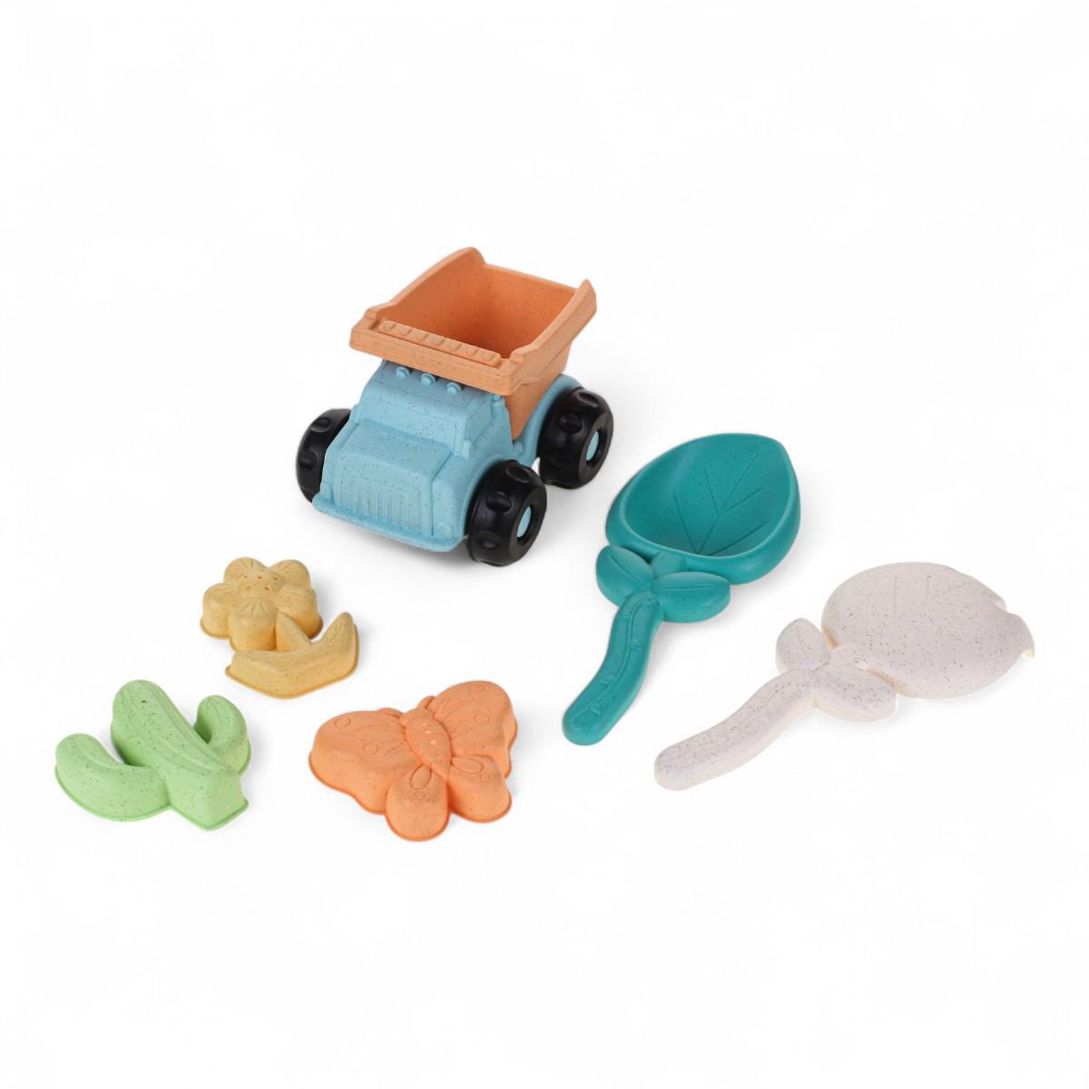 В набор входят 6 предметов: машинка-грузовик, совок, грабли и 3 формочки в виде кактуса, цветка и бабочки. Игрушки идеально подходят для игры на пляже или в песочнице. С помощью формочек ваш ребенок сможет создавать удивительные песочные скульптуры, а совок и грабли помогут ему в этом. Все элементы набора выполнены из безопасного пластика, что делает их подходящими для детей самых маленьких возрастов.