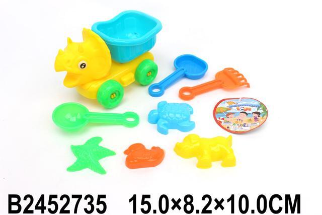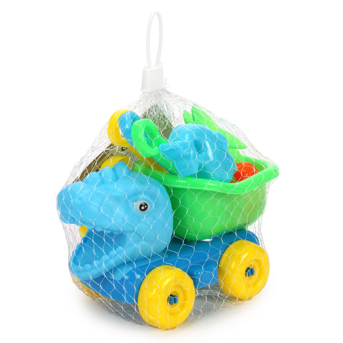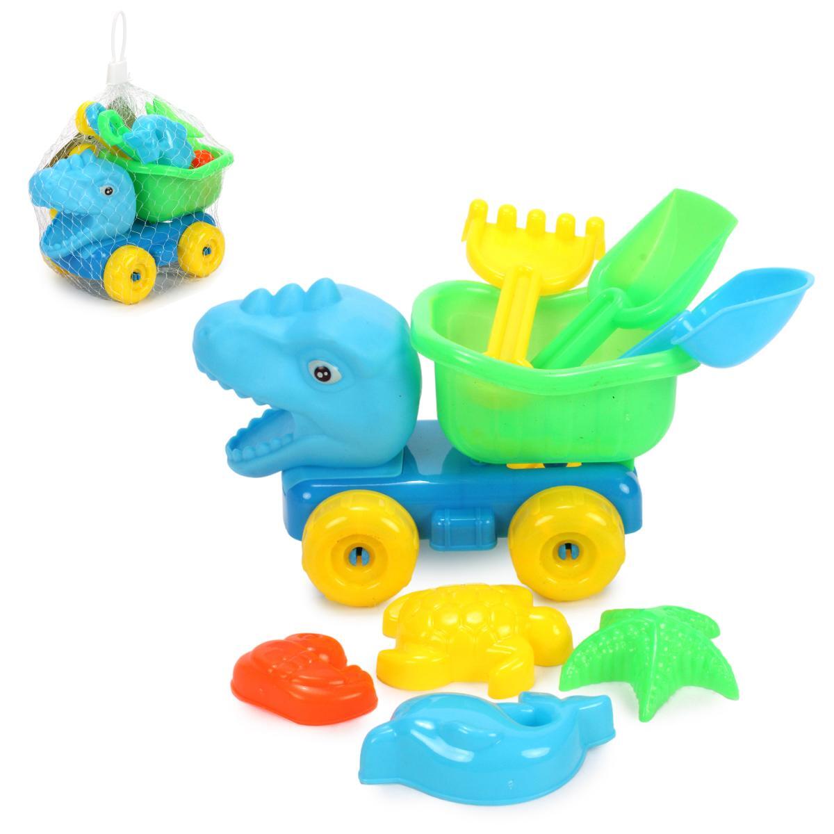 Набор для песка с машинкой-динозавром, 9 предметов, пластик, яркие цвета