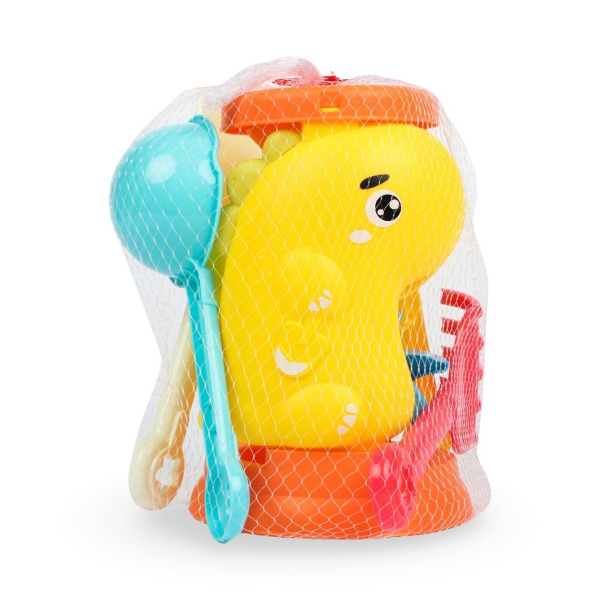 Яркие контрастные цвета (жёлтый, красный, голубой) помогают быстро находить инструменты в песке. Лёгкий ударопрочный пластик выдерживает активные игры. Компактные размеры (20×16×22 см) позволяют брать набор на пляж или прогулку.