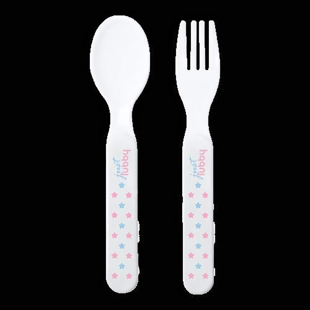 Набор для кормления 'Just Lubby' безопасный, ложка и вилка, полипропилен, 2 шт, белый с декором