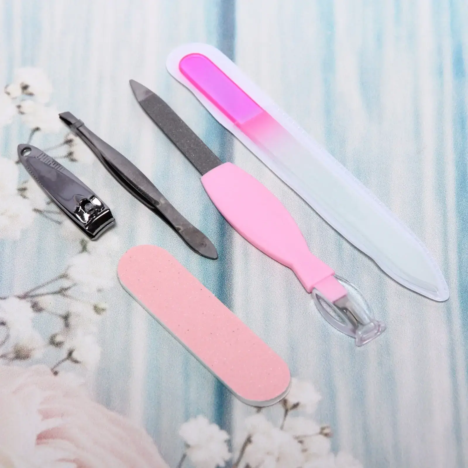 Набор состоит из трех пилок, кусачек и пинцета, что делает его универсальным для ухода за ногтями. Инструменты подходят как для профессионального, так и для домашнего использования. Благодаря компактным размерам (22*6 см) набор легко помещается в сумочку или косметичку, что позволяет всегда иметь его под рукой.