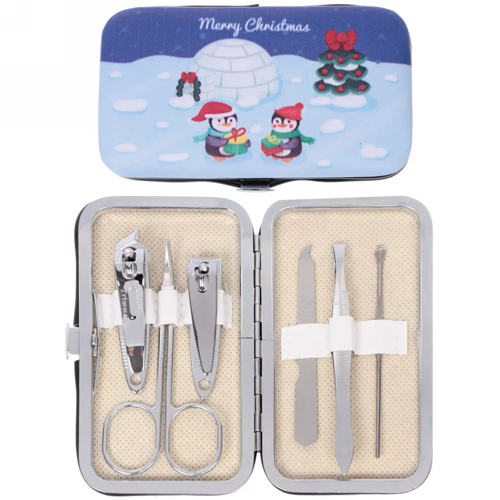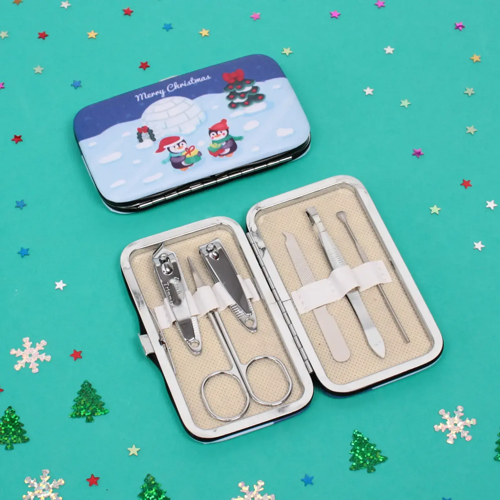 Набор для маникюра «New Bon Salon - Друзья Пингви», 6 предметов в металлическом футляре, 11×6,5 см, новогодний дизайн