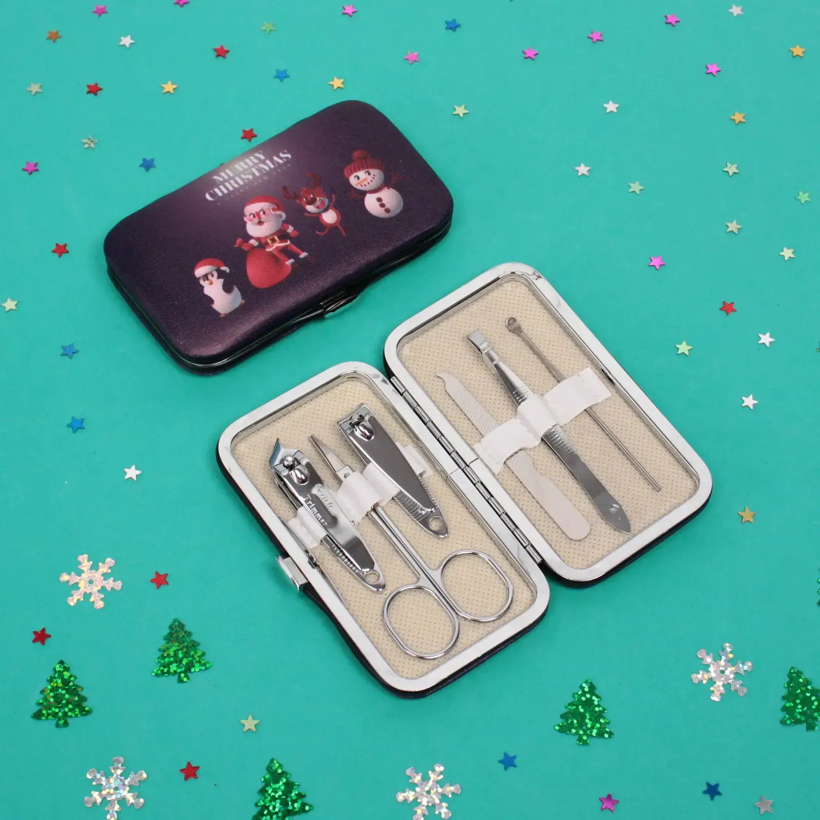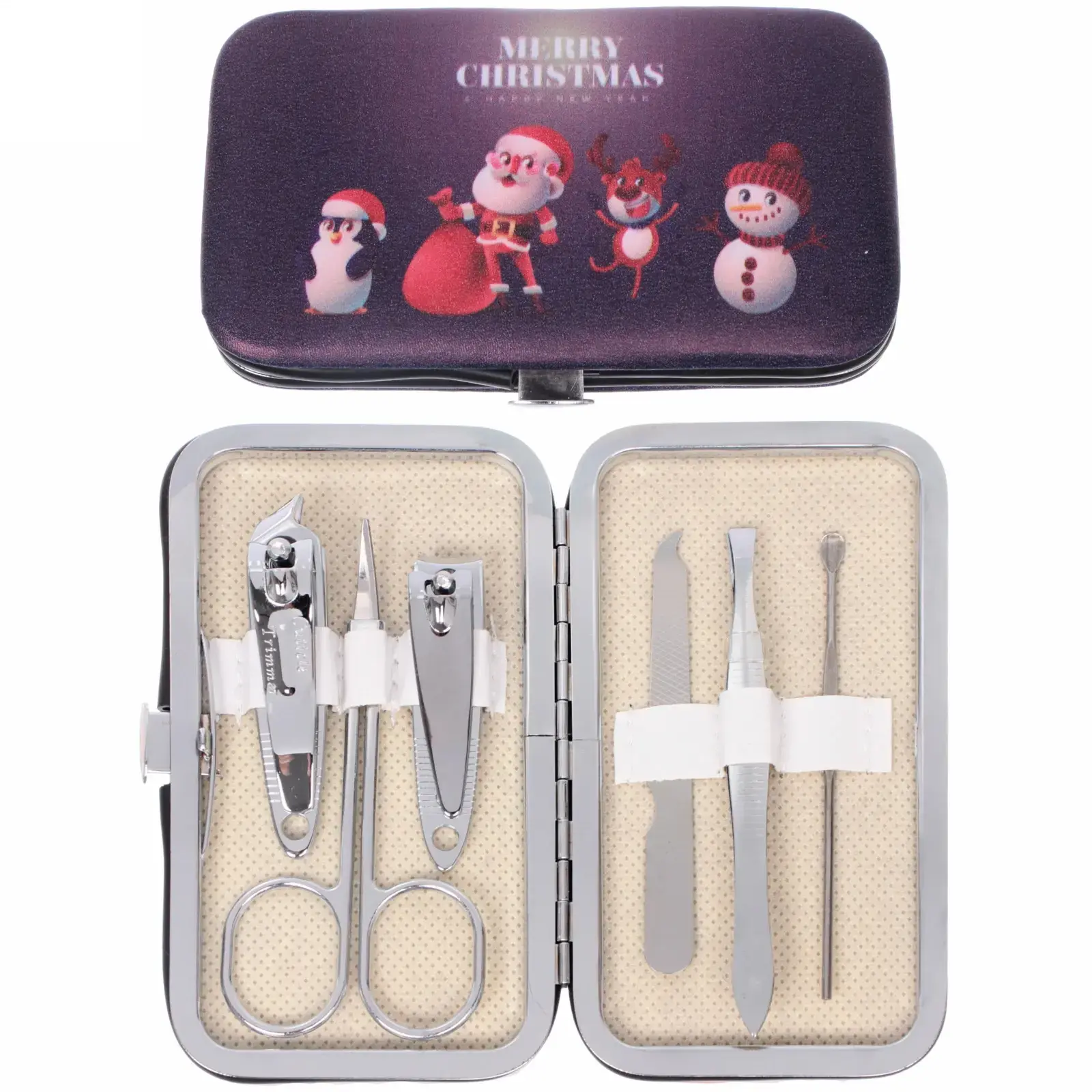 Порадуйте себя или близких стильным набором для маникюра в праздничном дизайне. Компактный металлический кейс с изображением любимых зимних персонажей станет не только функциональным, но и эстетичным дополнением косметички.