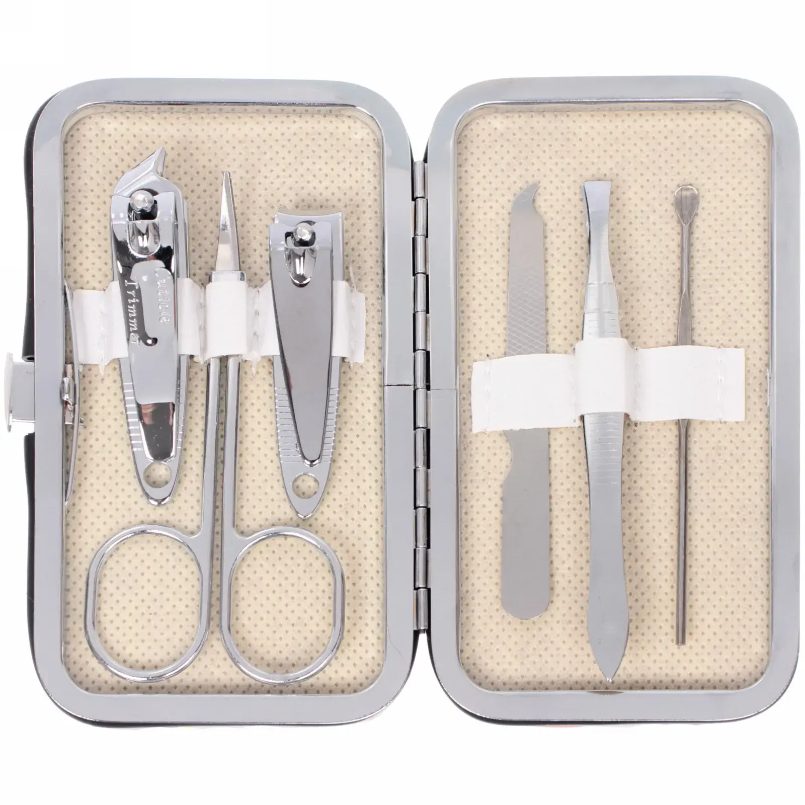 Все инструменты выполнены из качественного металла с зеркальной полировкой, что обеспечивает долговечность использования. Мягкая текстильная подкладка надежно фиксирует каждый инструмент, предотвращая повреждения при транспортировке.