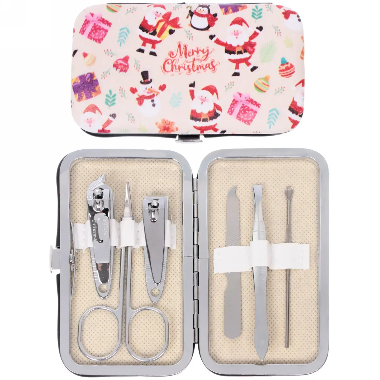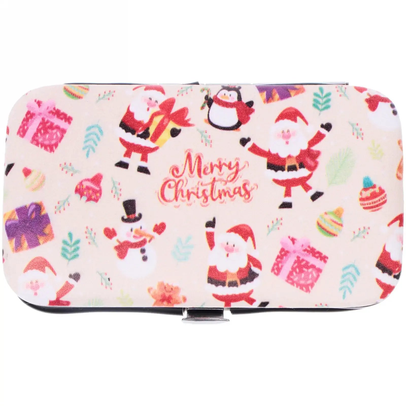 Футляр оформлен с изображениями Санта-Клауса и новогодних подарков, что делает его идеальным для праздничного сезона. Металлические инструменты имеют хромированное покрытие, что придает им стильный вид и облегчает уход за ними. Не упустите возможность порадовать себя и своих близких качественным набором для маникюра!