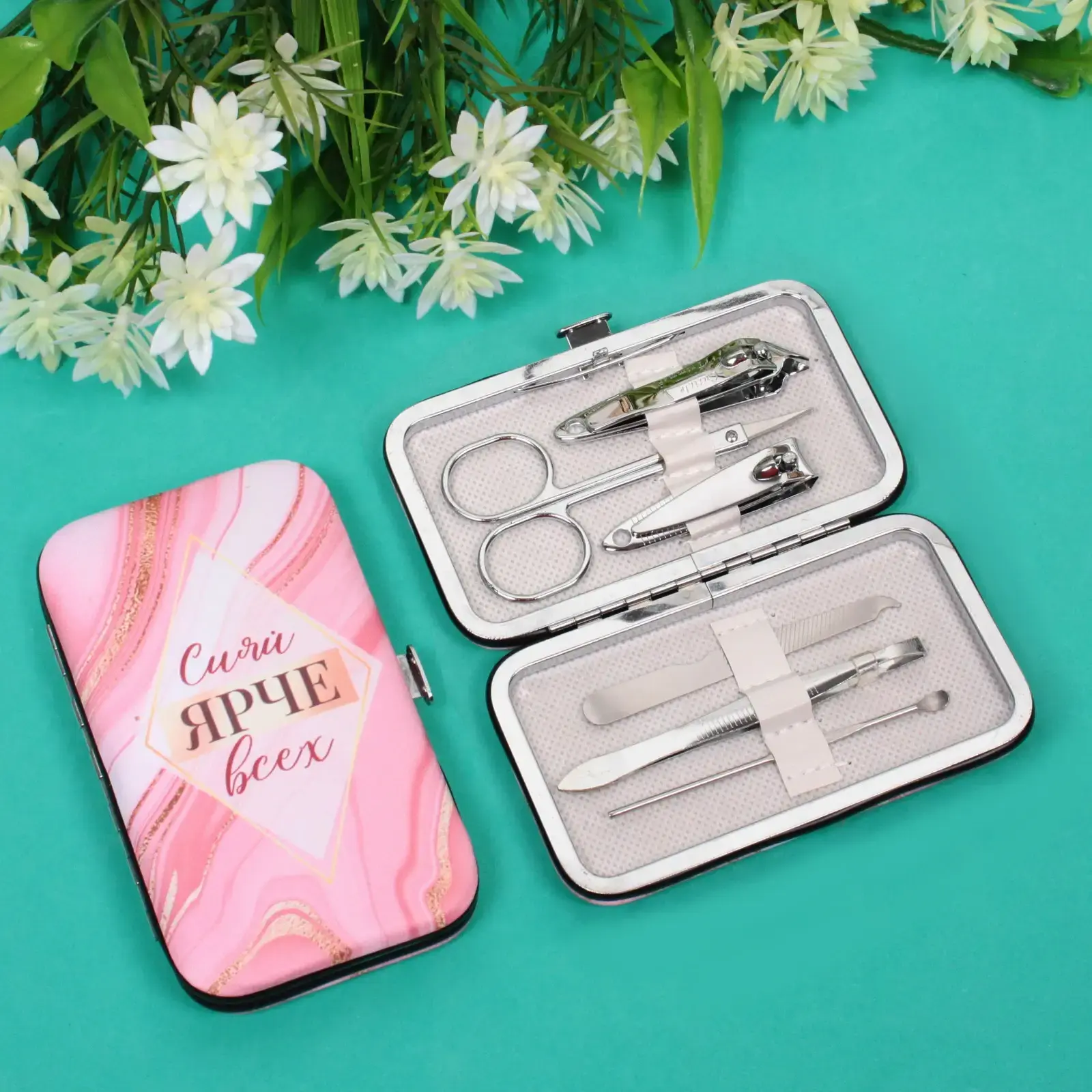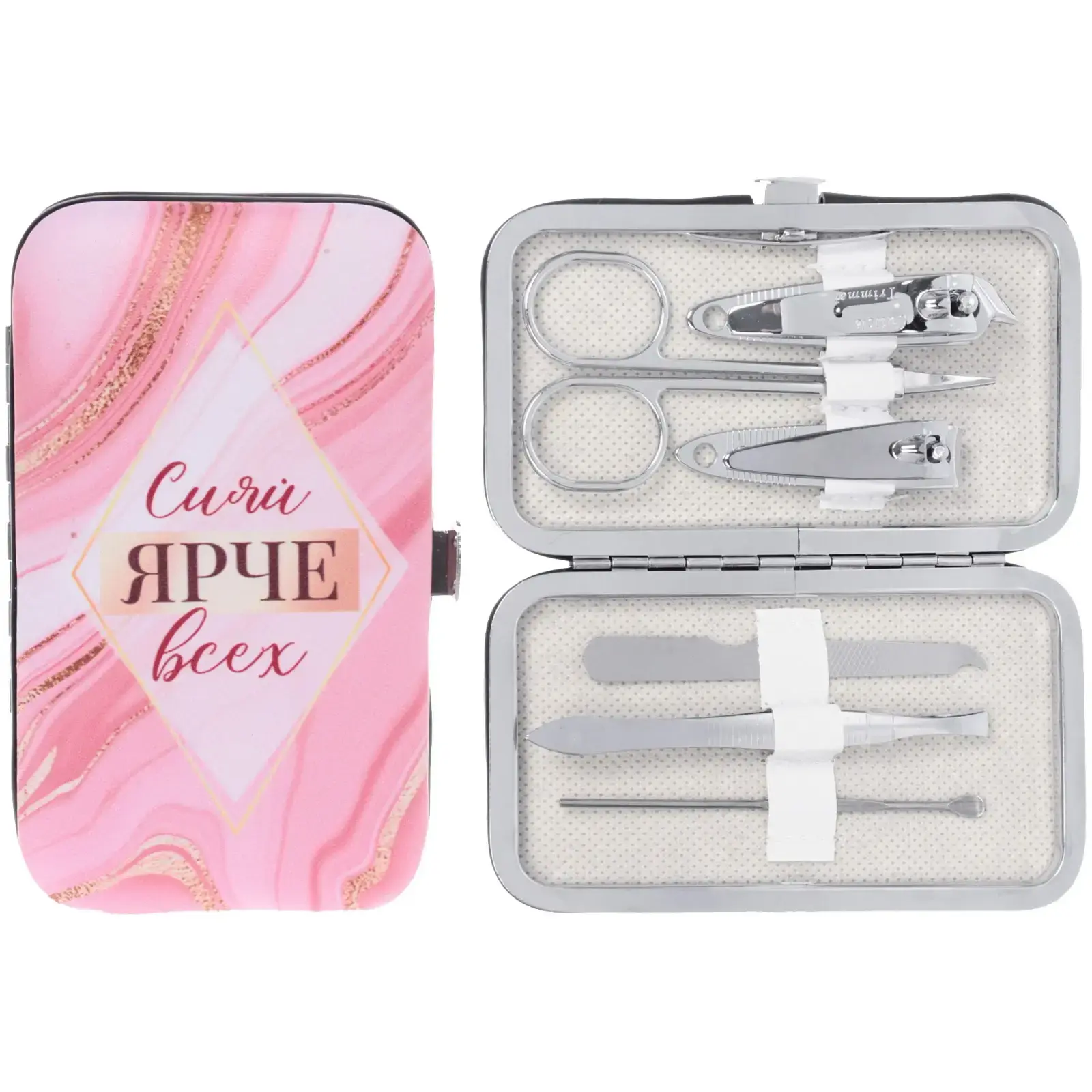 Набор для маникюра в футляре "Сияй ярче всех!", 6 инструментов, металл, 11*6,5см