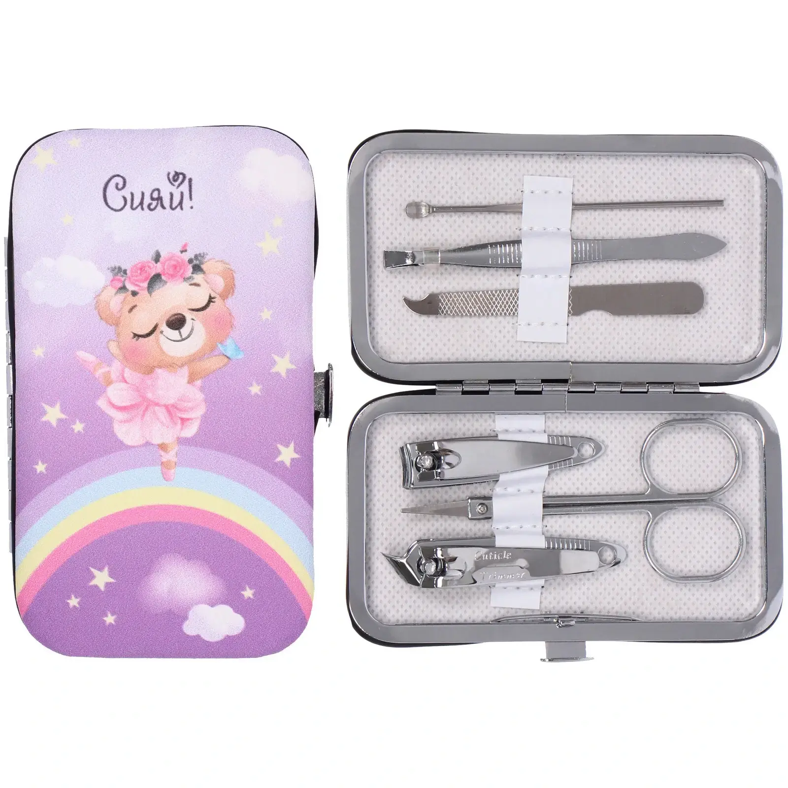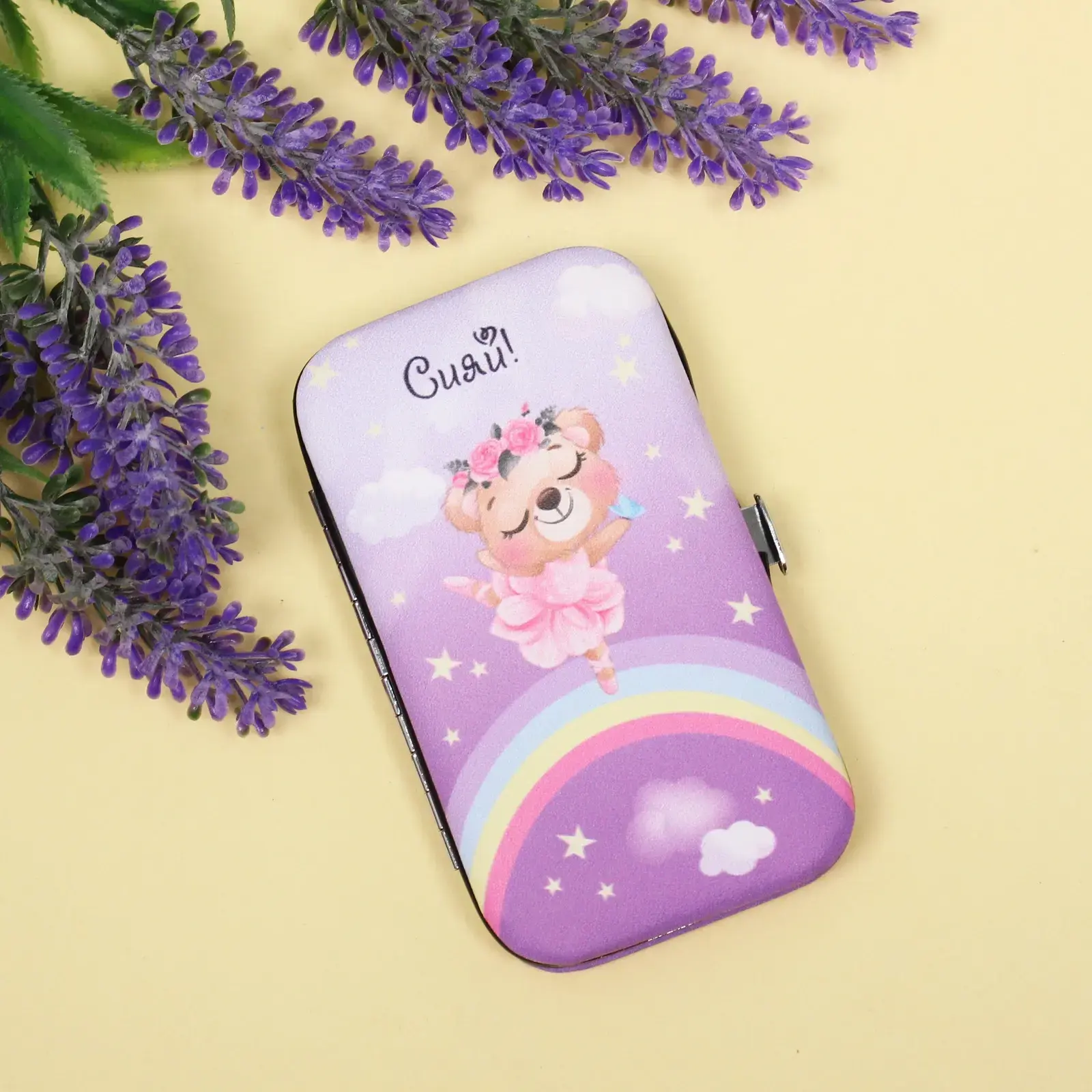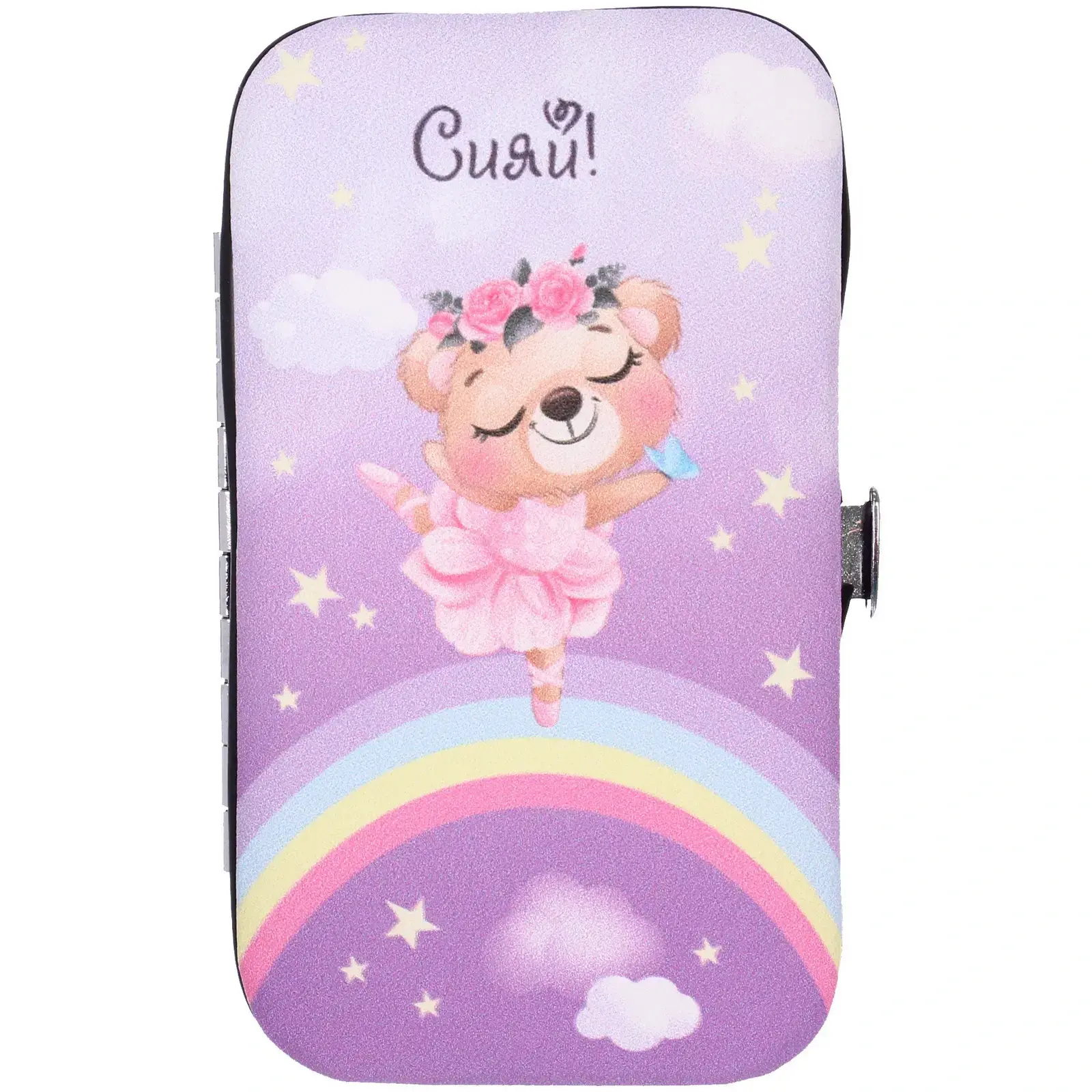 Выбирая набор для маникюра «СИЯЙ!», вы получаете не только высококачественные инструменты, но и стильный футляр с ярким дизайном. Фиолетовый цвет с изображением медвежонка в балетной пачке и радугой создает позитивное настроение и делает процесс ухода за собой более увлекательным. Кроме того, компактный футляр защищает инструменты от повреждений и загрязнений.