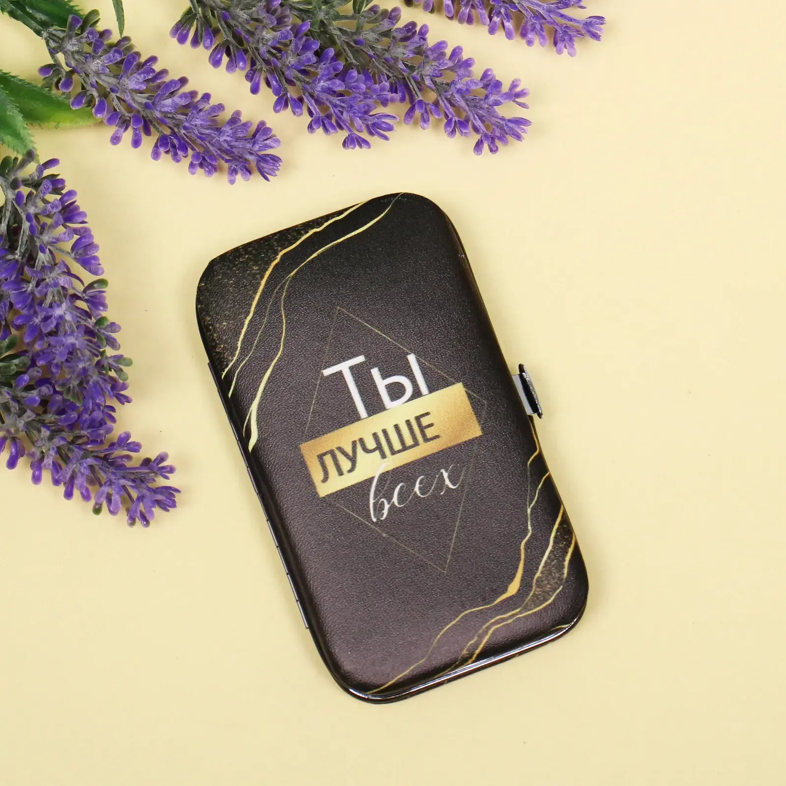 Подарите себе или близким комфорт и стиль с набором для маникюра в футляре «Ты лучше всех». Этот набор станет незаменимым помощником в уходе за ногтями, обеспечивая идеальный маникюр в любое время и в любом месте. Компактный футляр размером 11х6,5 см удобно помещается в сумке, что позволяет всегда иметь под рукой необходимые инструменты.