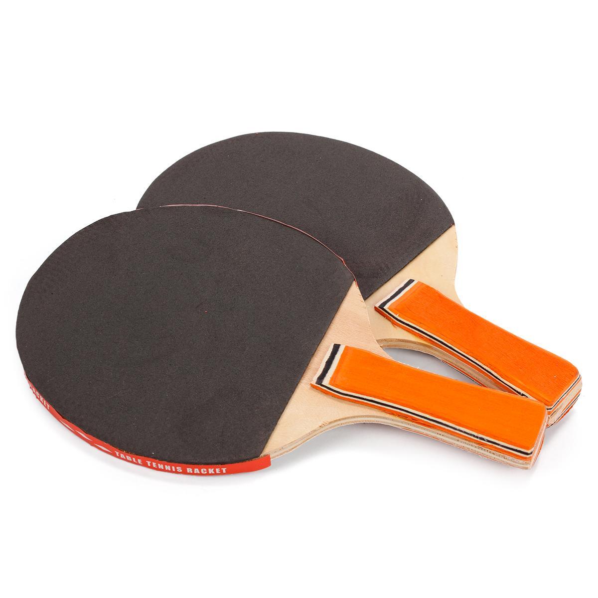 Ракетки имеют резиновое покрытие на поверхности для улучшения сцепления с мячом и контроля над ударом. Оранжевые ручки с полосками обеспечивают удобный и надежный захват.