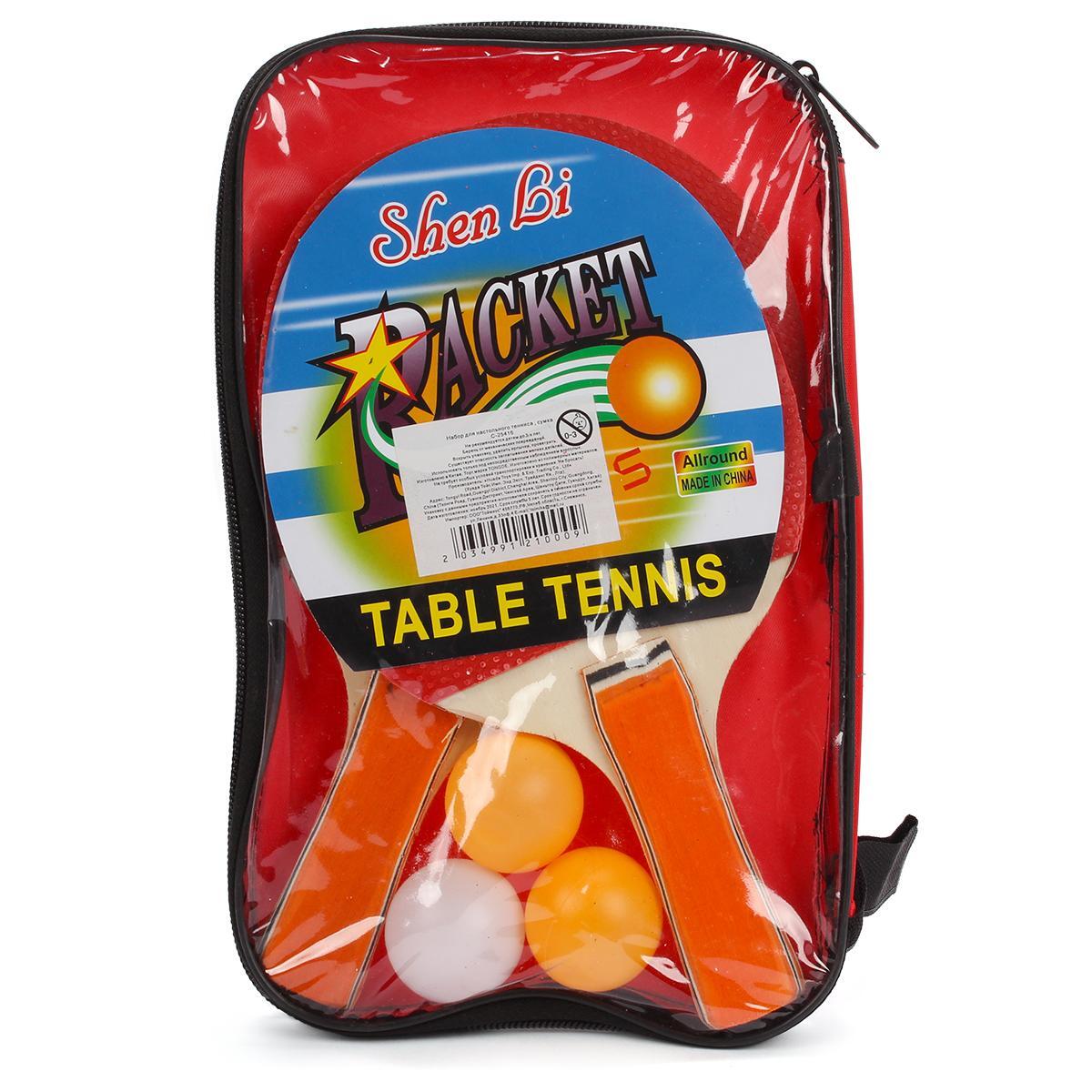 Набор для настольного тенниса «Shen Li Allround»: 2 ракетки, 3 мяча, чехол, резиновое покрытие, деревянные ручки