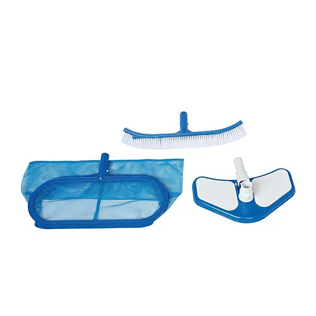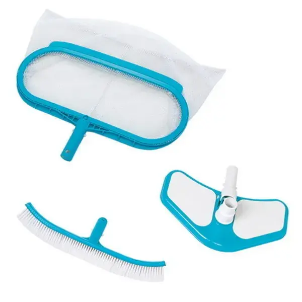 Поддерживайте кристальную чистоту вашего бассейна с набором 'Deluxe Intex'. Три профессиональных инструмента помогут быстро устранить загрязнения на поверхности, стенах и дне.