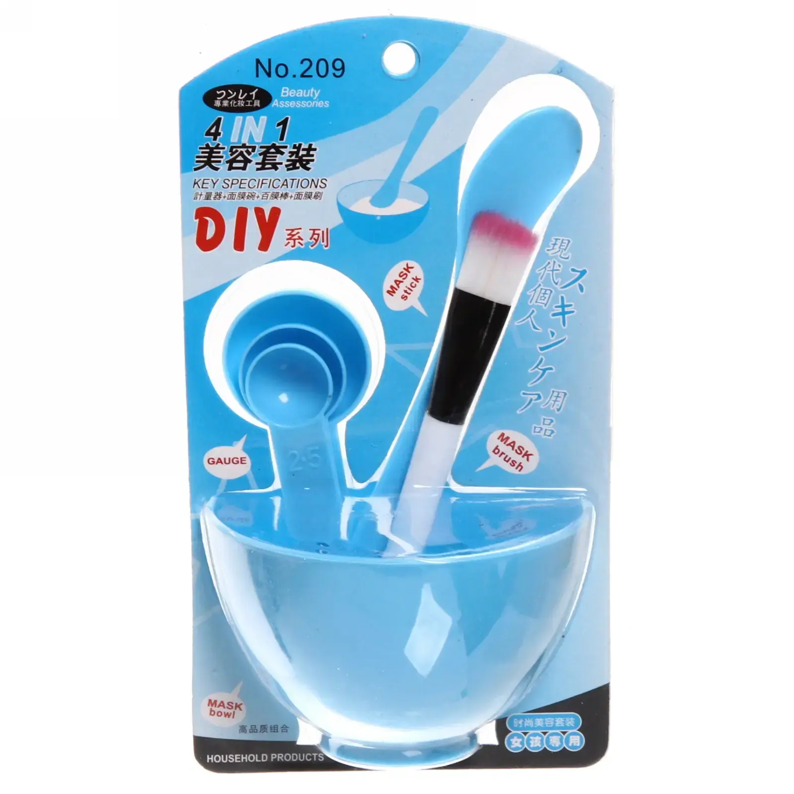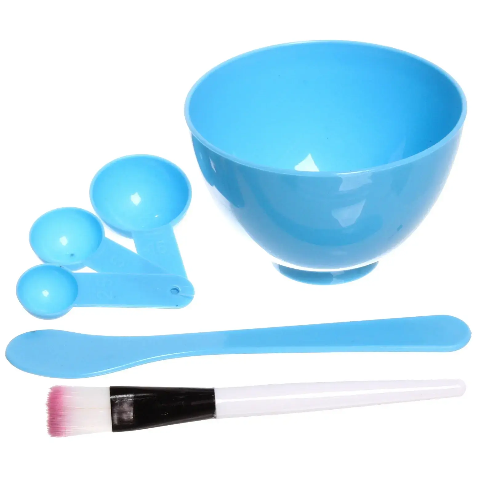 В набор входят: кисть для нанесения, глубокая чаша, мерная ложка и три мерные ложки. Все предметы выполнены из легкого и прочного пластика, что делает их удобными в использовании. Чаша имеет устойчивое основание и округлую форму, что позволяет легко смешивать ингредиенты. Мерные ложки имеют четкую маркировку объемов, что упрощает процесс приготовления.