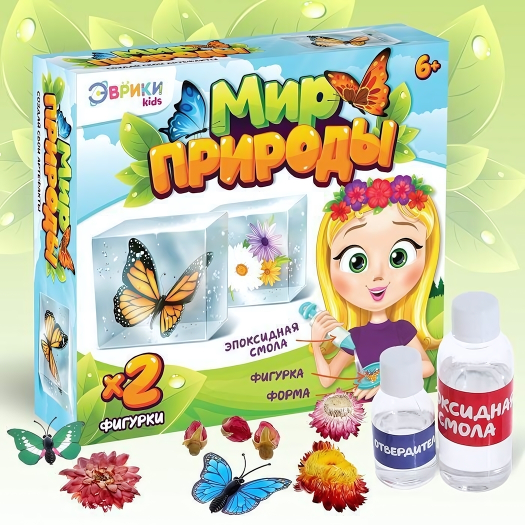 Набор для творчества «Мир природы» превратит обычный день в увлекательное приключение, где наука встречается с искусством. Ребёнок от 6 лет научится работать с эпоксидной смолой, создавая уникальные украшения с цветами и бабочками.
