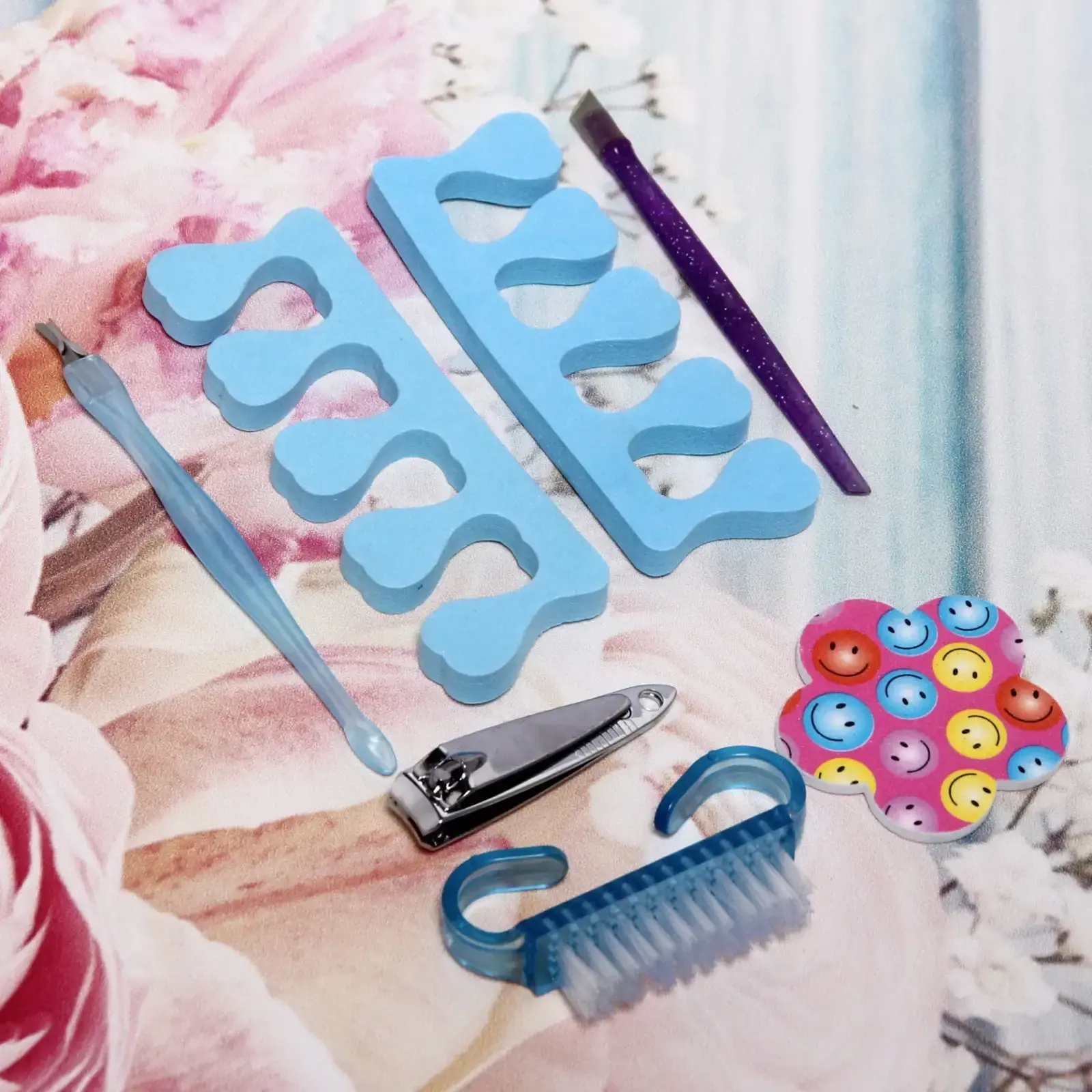 Каждый инструмент в наборе выполнен из качественных материалов, таких как металл и пластик, что обеспечивает долговечность и надежность. Яркие цвета и стильный дизайн делают процесс ухода за ногами не только полезным, но и приятным. Компактные размеры (10,5х16 см) позволяют легко помещать набор в сумку или косметичку.