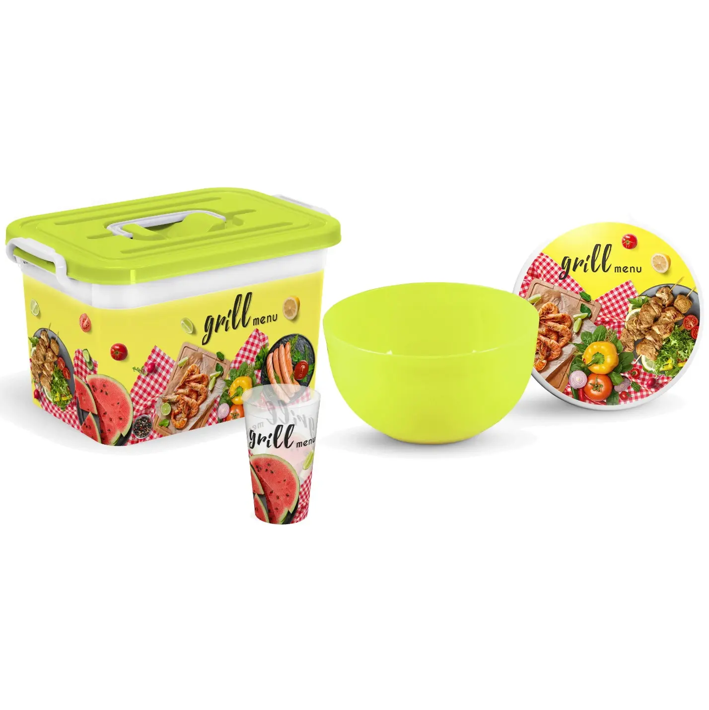 Набор для пикника «Grill menu», 19 предметов, пластик, салатовый