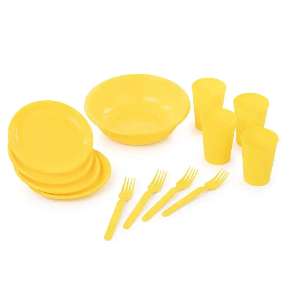 Набор для пикника на 4 персоны, 13 предметов, пластиковая посуда, желтый цвет