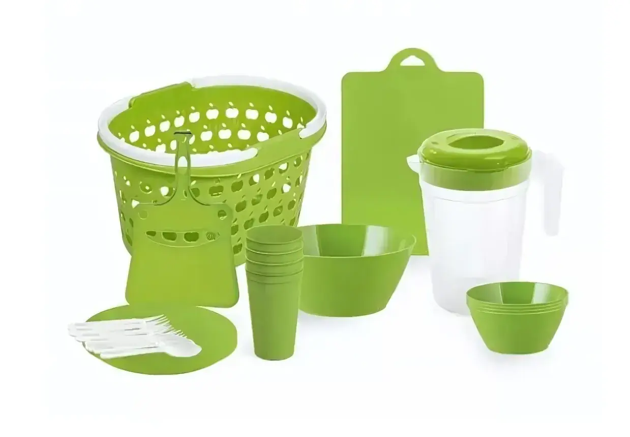 Все предметы выполнены из высококачественного пластика зеленого цвета, устойчивого к механическим повреждениям и простого в уходе.