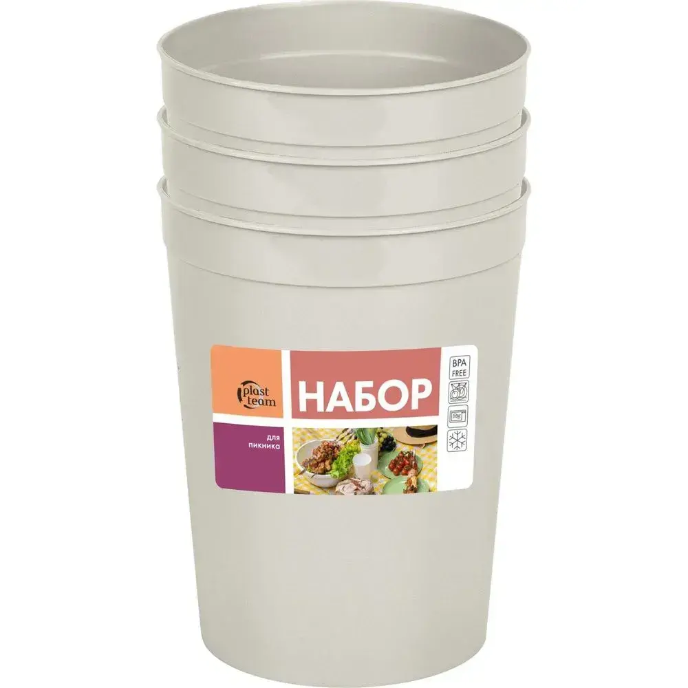 Набор стаканов пластиковых для пикника, 3 шт, небьющиеся, легкие, цвет в ассортименте