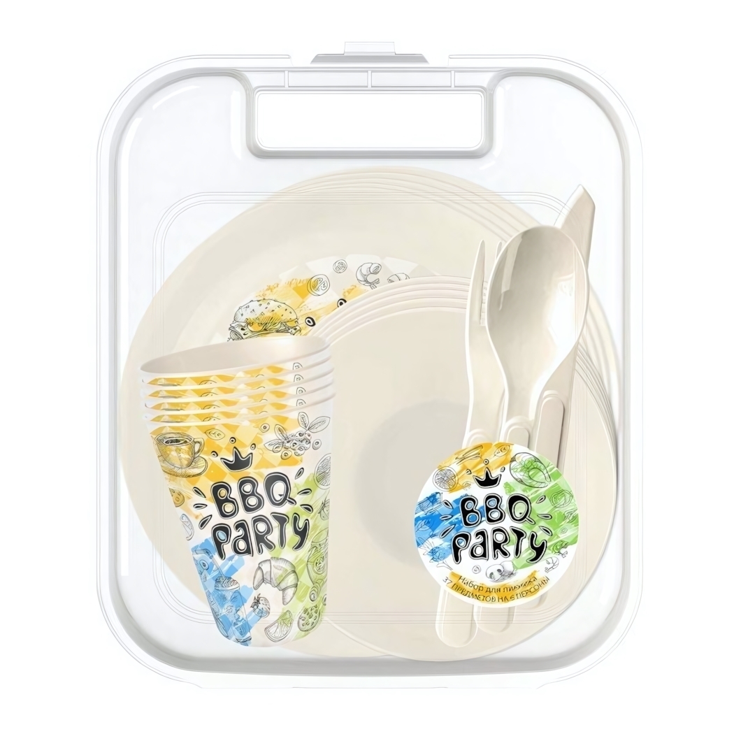 Практические детали: изготовлен из безопасных и легких пластиковых материалов, устойчивых к воздействию внешней среды. Размер контейнера обеспечивает комфортное хранение и транспортировку, а также компактность при использовании на открытом воздухе. Набор рассчитан на 6 персон, подходит для различных мероприятий на свежем воздухе и станет незаменимым помощником в организации отдыха.