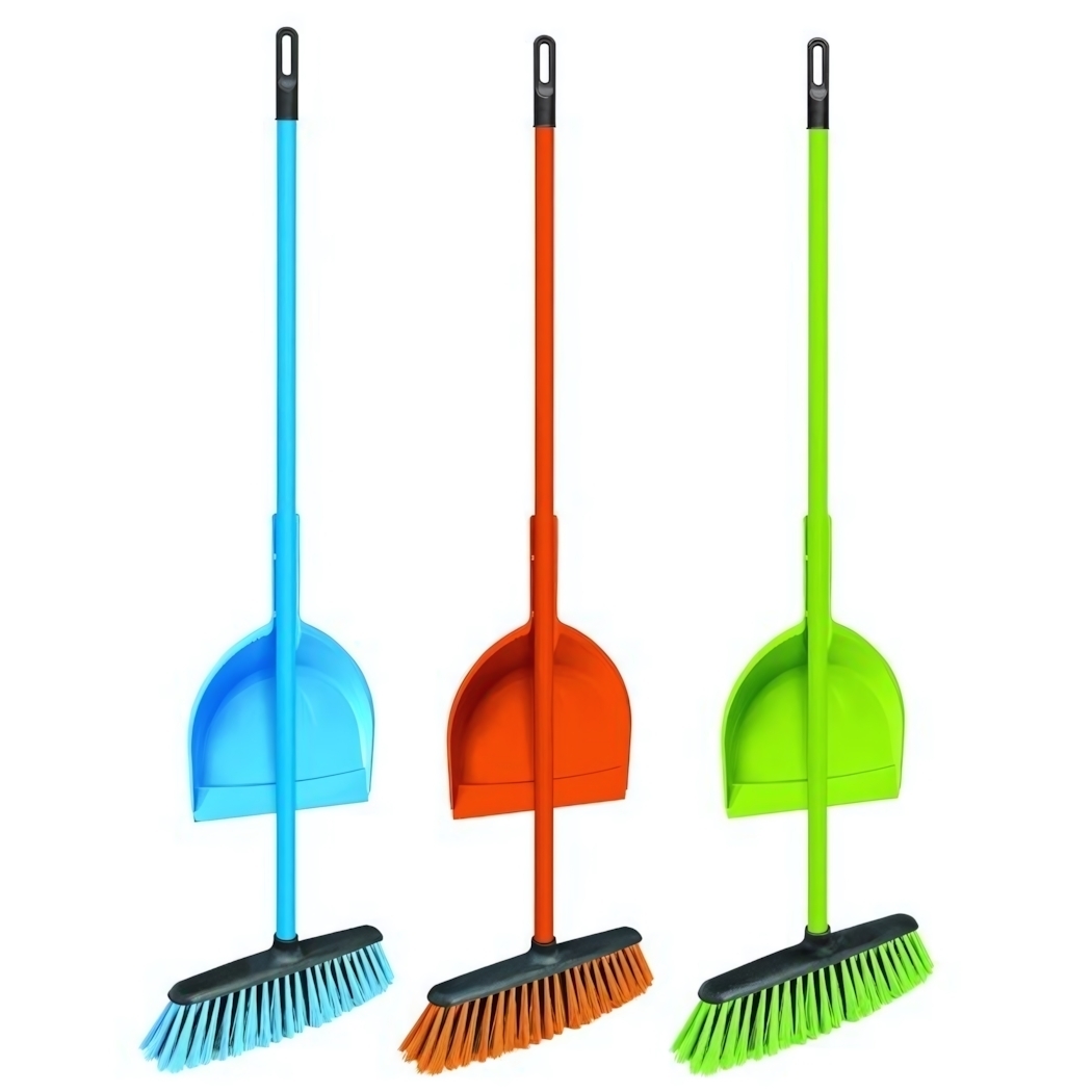Комплект поставляется в собранном виде и готов к использованию сразу после распаковки. Совок и щетка фиксируются на рукоятке одним движением — система крепления выдерживает нагрузку до 5 кг. Подходит для уборки в квартирах, офисах, мастерских и складских помещениях.