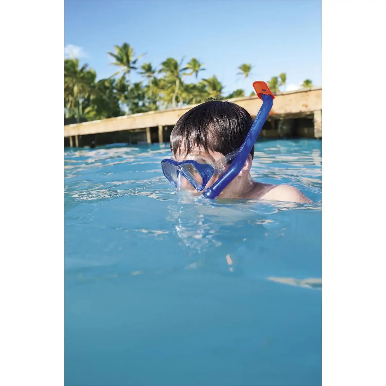 Набор предназначен для активного отдыха и подходит для детей, которые хотят исследовать подводный мир. Маска имеет герметичный край и регулируемое оголовье, что обеспечивает идеальную посадку на лице. Трубка оснащена технологией защиты от брызг, предотвращающей попадание воды внутрь, а в случае необходимости, воду можно легко слить через сливной клапан.