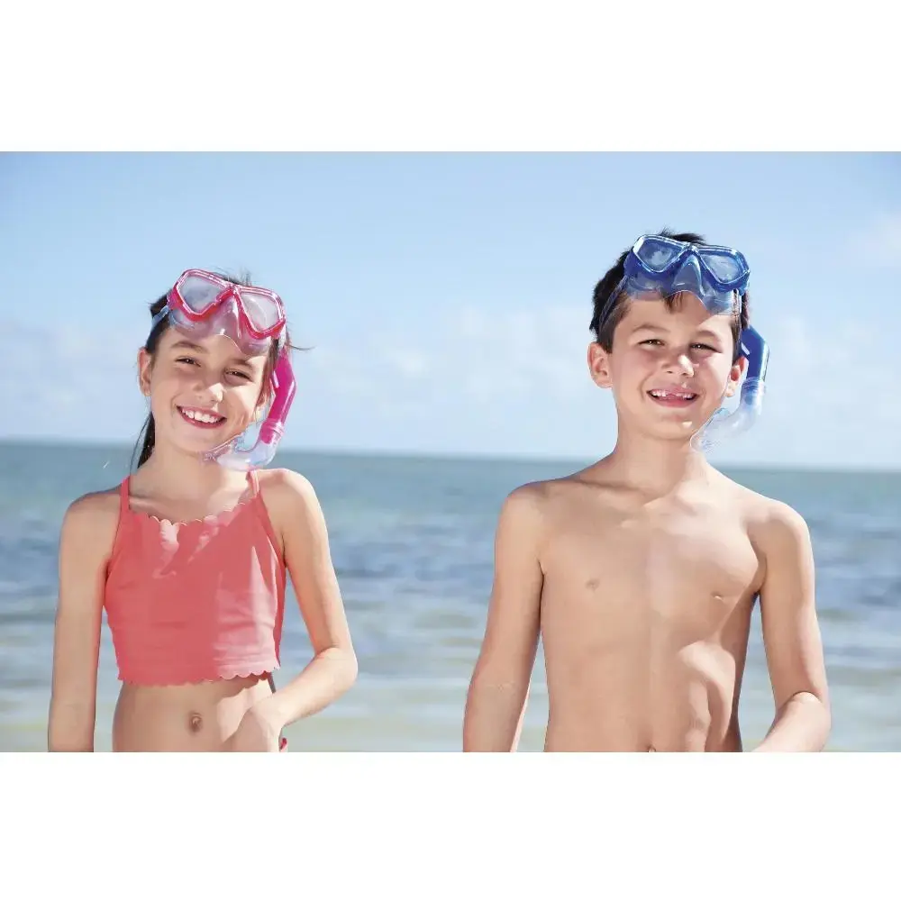 Комплект включает маску с прозрачными линзами и трубку, выполненные в ярких цветах, что делает их привлекательными для детей. Размеры и дополнительные характеристики не указаны, но набор подходит для детей от 3 лет и старше. Позвольте вашему ребенку наслаждаться подводным плаванием с набором Dominator!