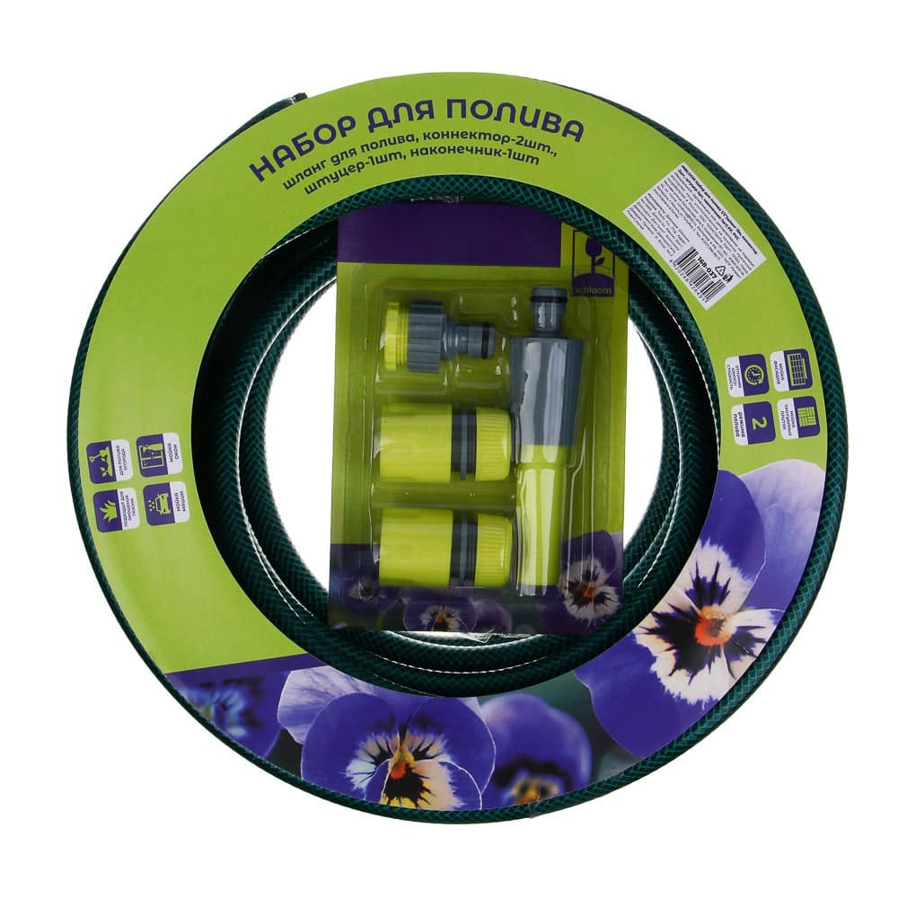 Набор для полива 1/2" 15м, шланг ПВХ зеленый "Inbloom", коннектор 2шт, штуцер, наконечник