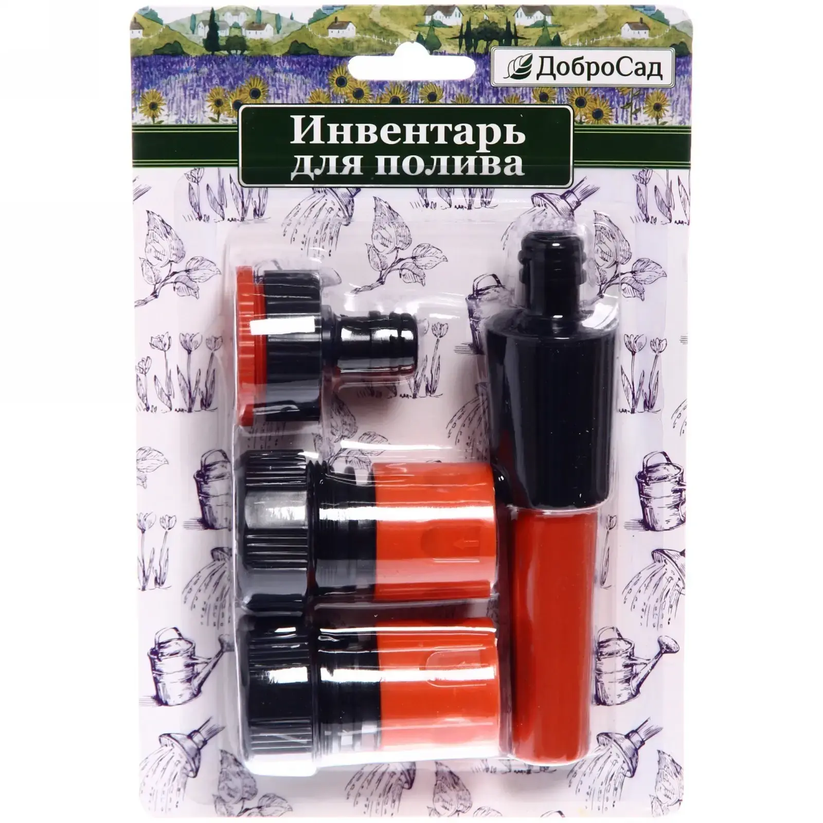 Все элементы набора имеют компактные размеры, что делает их удобными для хранения и транспортировки. Цветовая гамма — черный с оранжевыми вставками, что придает набору стильный вид. Упаковка оформлена с изображением растений, что подчеркивает его предназначение. Не упустите возможность сделать полив вашего сада более удобным и эффективным с набором от "ДоброСад"!