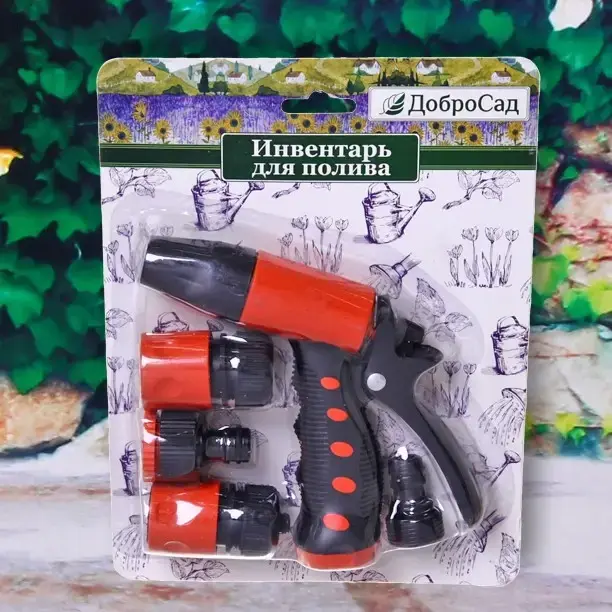 Набор для полива выполнен в стильном черно-красном цвете, что делает его не только функциональным, но и эстетически привлекательным. Все элементы набора легко соединяются между собой, что позволяет быстро настроить систему полива под ваши нужды. Не упустите возможность сделать уход за вашим садом более простым и эффективным с набором от "ДоброСад"!