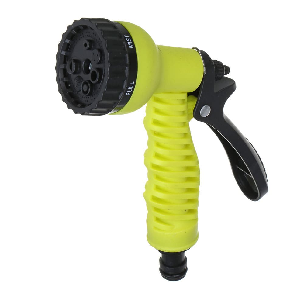 - Пистолет-распылитель с 7 режимами подачи воды — от мягкого душа до сильной струи