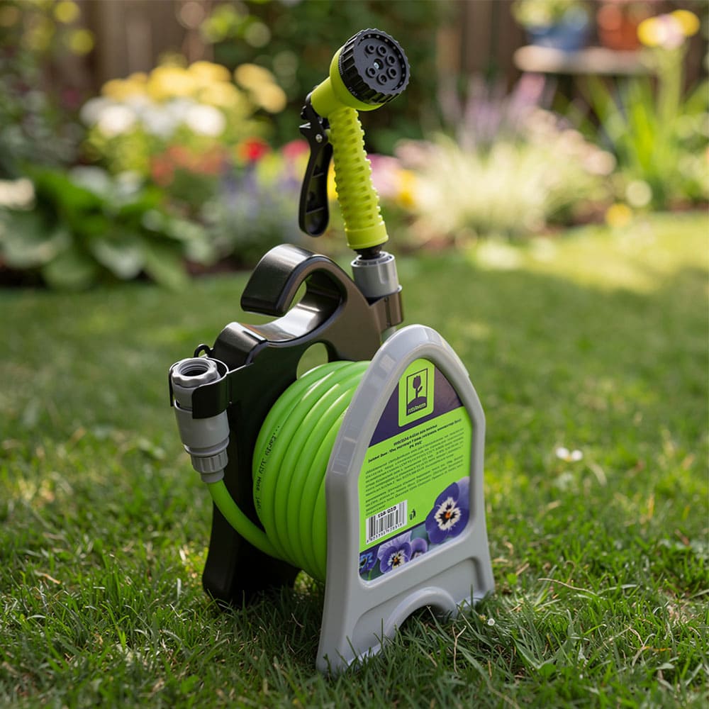 Шланг выполнен из качественного ПВХ — материал устойчив к перегибам, не трескается на солнце и сохраняет форму в течение всего сезона. Пистолет-распылитель с 7 режимами позволяет легко подобрать нужную интенсивность и форму струи: бережный полив рассады, орошение цветников или смыв загрязнений — всё это доступно в одном инструменте. Катушка упрощает хранение и транспортировку: шланг всегда аккуратно смотан и готов к использованию.