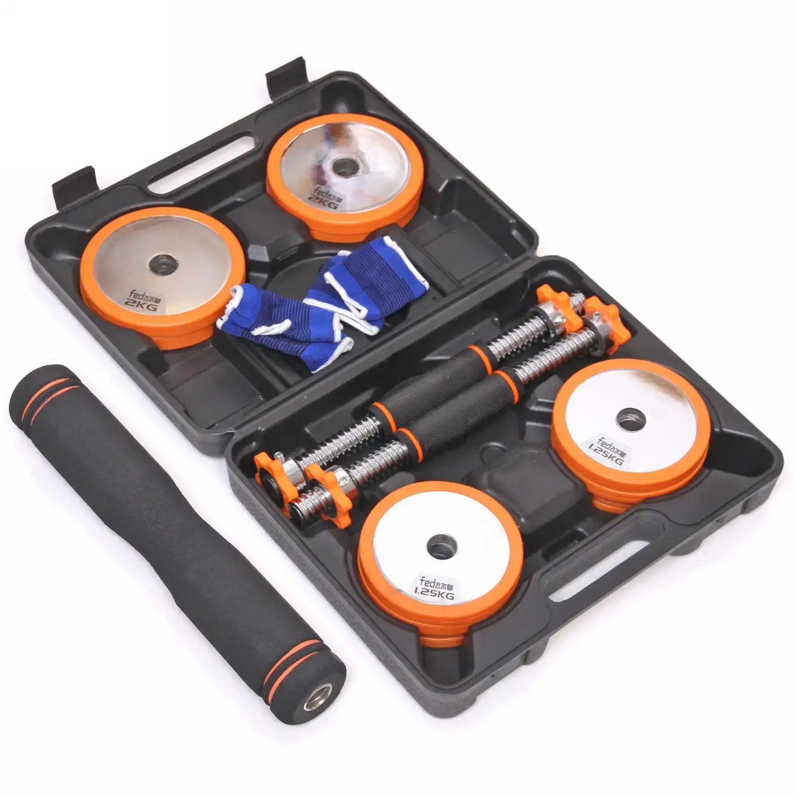 Набор включает разборную штангу с 4 дисками по 5 кг и две гантели с 8 дисками по 1.25 кг. Регулируемая конфигурация от 2.5 до 20 кг подходит для силового тренинга, кроссфита и реабилитационных упражнений. Универсальные крепления совместимы с большинством стандартных аксессуаров.