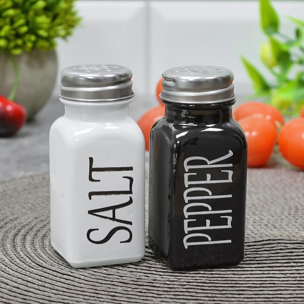 Контейнеры изготовлены из высококачественного окрашенного стекла, устойчивого к механическим повреждениям. Прямоугольная форма с закругленными углами обеспечивает комфортное использование и удобное хранение. Надписи "SALT" и "PEPPER" помогают быстро определить содержимое.