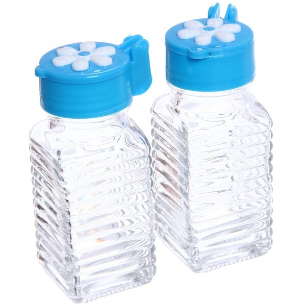 Стильный набор из двух бутылок для соусов 'Цветок' станет незаменимым помощником на вашей кухне. Прозрачные емкости с элегантными голубыми крышками не только практичны, но и украшают обеденный стол.
