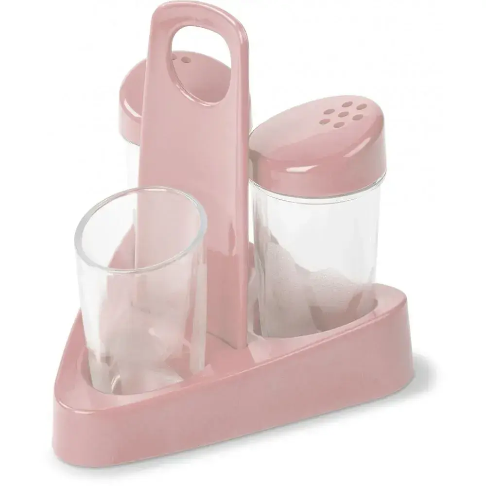 Набор для специй "Люмици" из 2 предметов, прозрачный пластик с розовой крышкой, 15 см