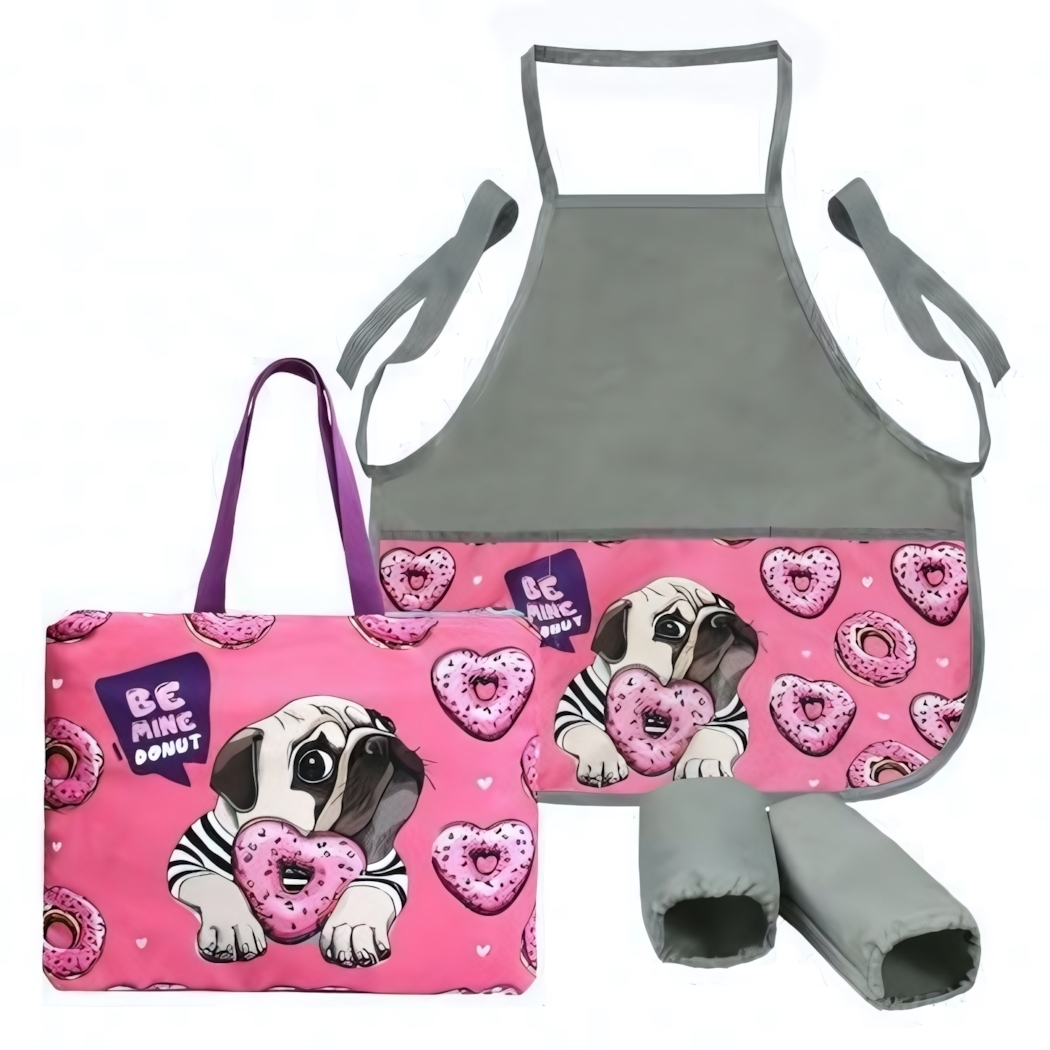 Превратите уроки труда и кулинарные эксперименты в увлекательное приключение с нашим набором "Собачка"! Этот яркий и практичный комплект не только защитит одежду вашего ребенка от пятен, но и подарит массу положительных эмоций. Милый мопс с пончиками на фартуке и сумке создаст веселое настроение и вдохновит на новые кулинарные шедевры.